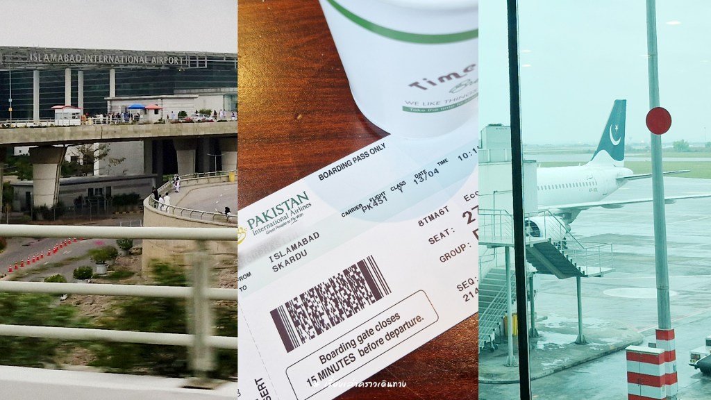 🚌 ➡️ ✈️ จากละฮอร์ขึ้นไปอิสลามาบัด 350 กม. ใช้เวลาประมาณ 4 ชม. เป้าหมายคือสนามบินอิสลามาบัด (Islamabad International Airport) เพราะพวกเราจะบินต่อไป Skardu เมืองทางเหนือของปากีสถานกัน ไปถึงสนามบินแล้วยังต้องสวดมนต์ภาวนากันด้วย เพราะว่ากันว่าเที่ยวบินในประเทศเลื่อนและยกเลิกกันบ่อยมาก ถ้าเที่ยวบินยกเลิก พวกเราต้องเปลี่ยนแผนการเที่ยวกันใหม่หมด แต่พวกเรามากับดวง เที่ยวบินก่อนเรายกเลิกหมด มาบินได้ที่เที่ยวบินพวกเรา โชคดีที่สุด ในที่สุดก็ไปถึงเมือง Skardu ตอน 11 โมงเช้า
