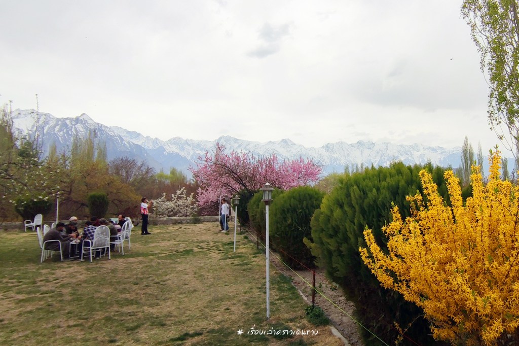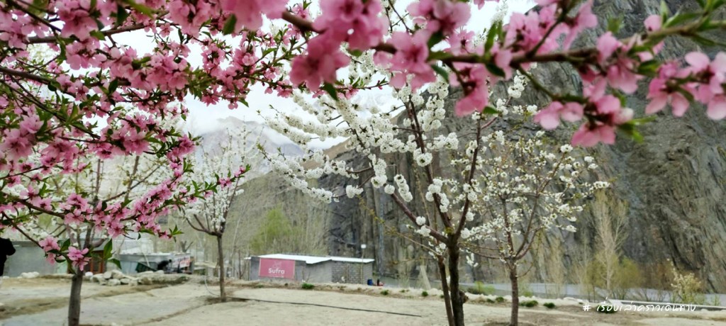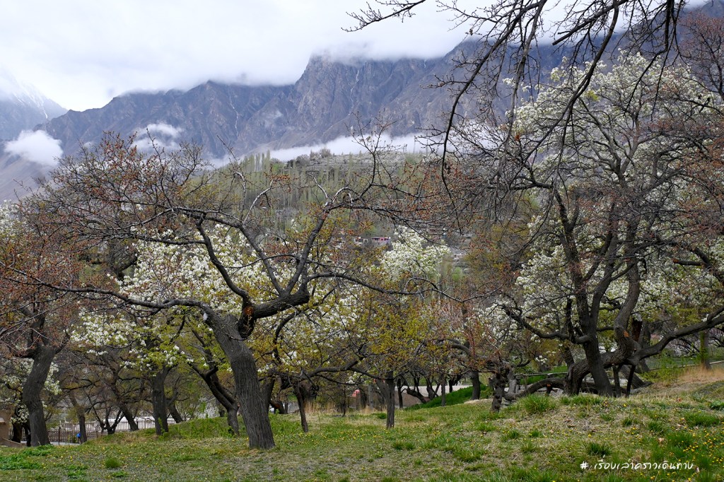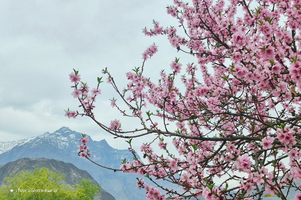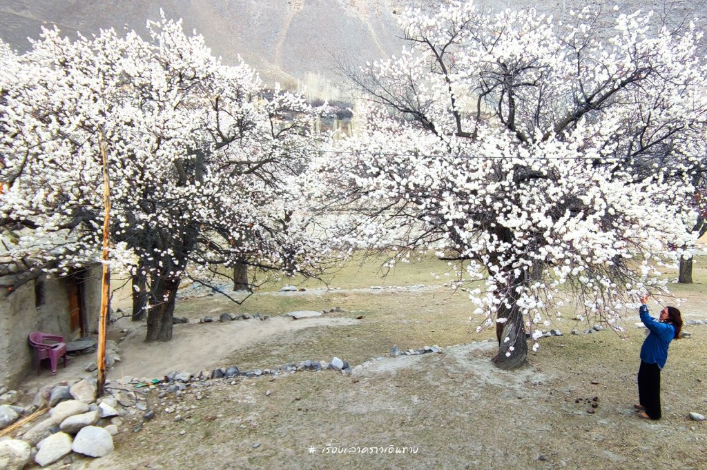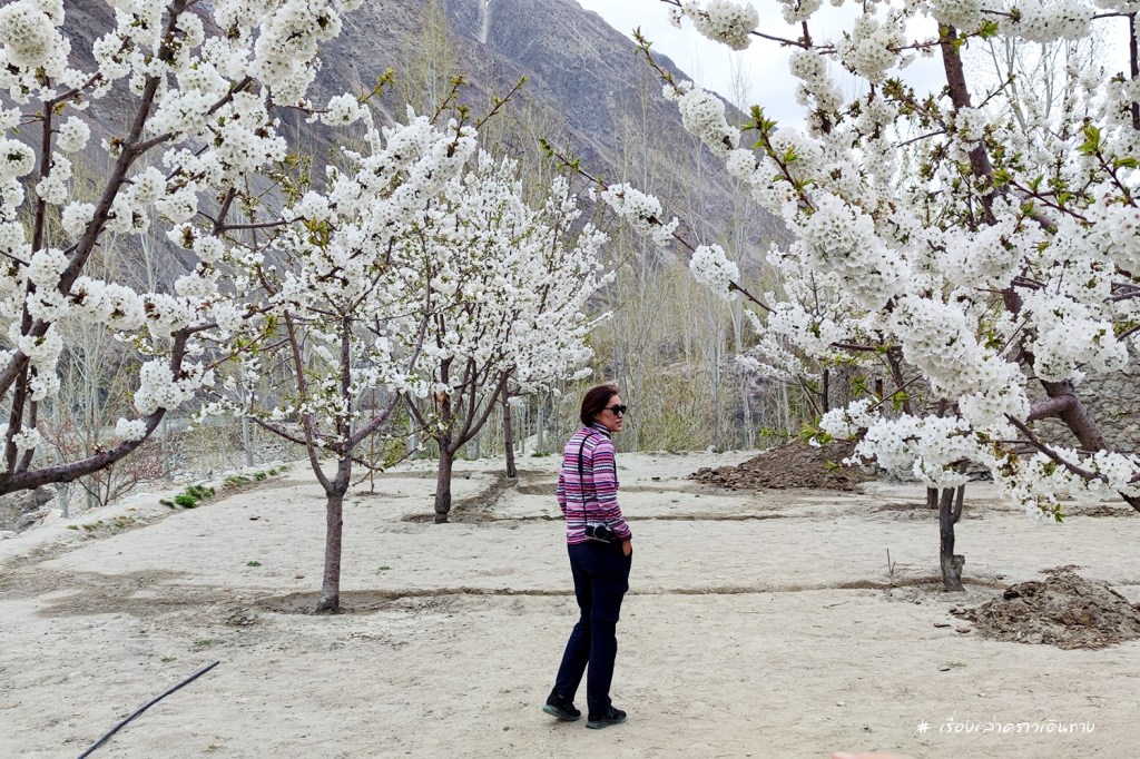 นักท่องเที่ยวทั่วไปชอบไปเที่ยวปากีสถานในช่วงฤดูใบไม้ผลิ (มีค. – พค.) เพราะเป็นช่วงที่ดอกไม้บานก่อนที่จะกลายเป็นผลผลิตในอีกไม่กี่เดือนข้างหน้า ถ้าเป็นนักท่องเที่ยวที่ชอบการเดินป่าขึ้นเขาก็จะนิยมไปในช่วงฤดูร้อน (มิย. – สค.) พวกเราเลือกมาช่วงดอกไม้บาน แค่วันแรกก็ประทับใจกับการได้นั่งทานอาหารเที่ยงล้อมรอบด้วยต้นเชอรี่ ต้นแอ้ปเปิ้ล ต้นพีช ที่ดอกกำลังบานเต็มที่
