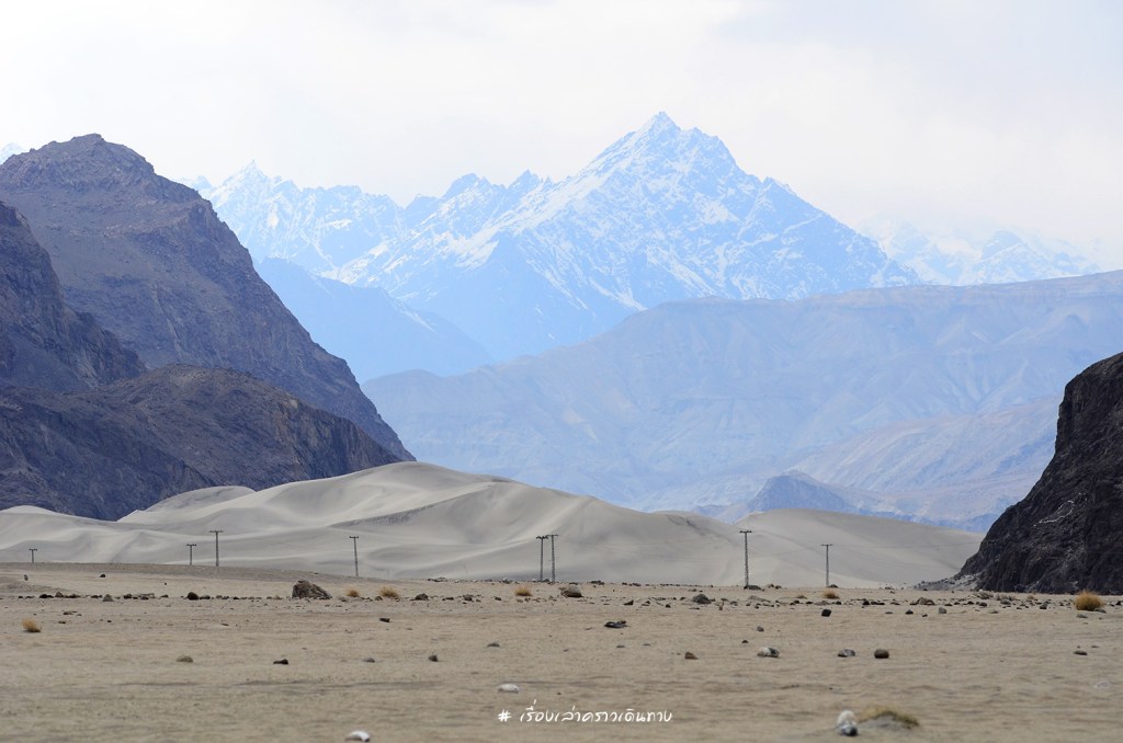 Sarfaranga Cold dessert ชื่อทะเลทรายเย็นเพราะอากาศแถบนี้หนาวเย็นตลอดปีด้วยความสูงจากระดับน้ำทะเล +2,226 ม. จึงได้รับตำแหน่งทะเลทรายเย็นที่อยู่สูงที่สุดในโลก (The highest cold desert in the world) ในฤดูหนาวบางครั้งก็มีหิมะลงมาปกคลุมบนผืนทรายด้วย แปลกมาก ทะเลทรายเย็นผืนใหญ่ล้อมรอบด้วยหุบเขาจาก Khaplu Valley ไปจนถึง Nubra Valley ใน Ladakh และหุบเขาใน Shigar Valley ไปจนถึง Zanskar mountain range ในเขตแคชเมียร์ แต่พื้นที่ทะเลทรายที่ใหญ่ที่สุดอยู่ในแถบ Shigar Valley, Skardu นี้เอง รถของพวกเราขับบนเส้นทาง Shigar road ที่ตัดผ่านผืนทะเลทรายเย็น จอดรถลงเที่ยวเล่นกันหน่อย ปกติจะได้นั้งจี๊บแล้วขับฉวัดเฉวียนในทะเลทราย แต่วันนี้จี๊บไม่มีบริการ สาเหตุเพราะเมื่อวานเกิดอุบัติเหตุ วันนี้เลยโดนสั่งหยุดบริการ