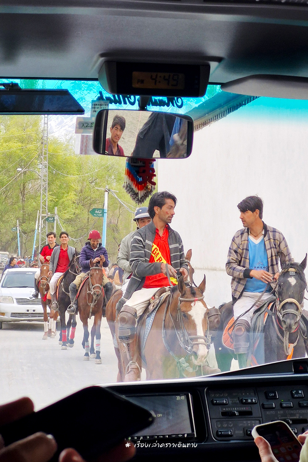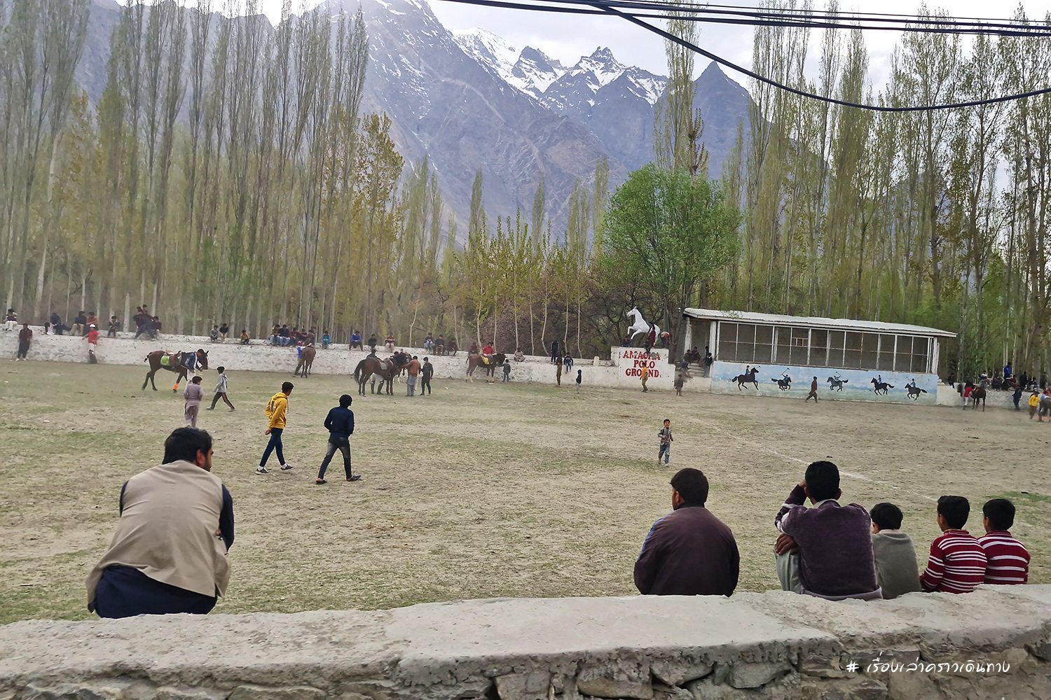 ออกจากจุดชมวิว นั่งรถต่อไปจนเข้าเขตเมือง Shigar ผ่านสนามกีฬาที่กำลังมีการแข่งโปโล หนึ่งในกีฬายอดนิยมของชาวปากีสถาน เมืองดูขนาดไม่ใหญ่มาก แต่สนามกีฬามีคนมาดูแข่งโปโลกันเยอะมาก
