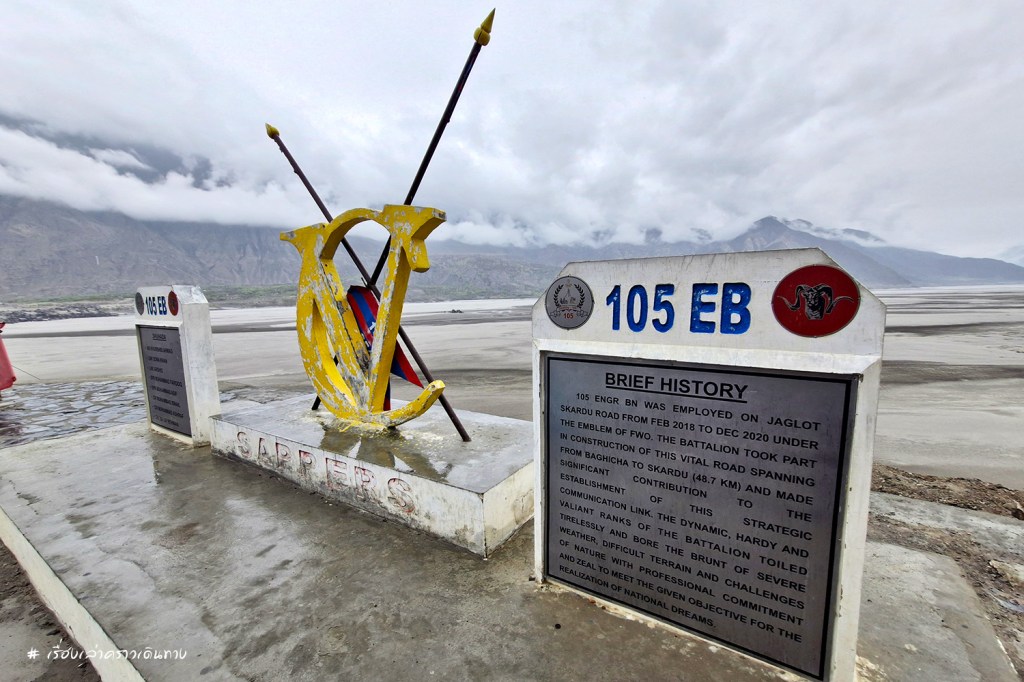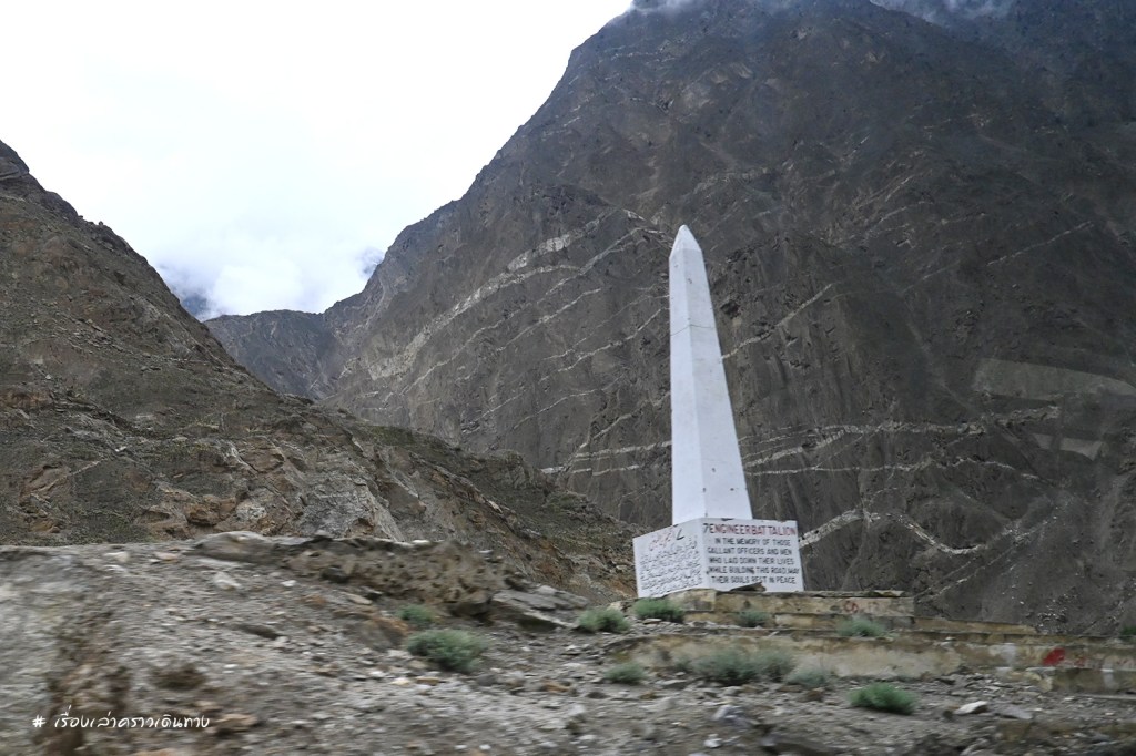 Here Stood Zulfiqar Ali Bhutto Monument อนุสาวรีย์เพื่อแสดงความเคารพต่อทหารช่างผู้เสียชีวิตในการพัฒนาประเทศ โดยเฉพาะการสร้างถนนสายสำคัญ Skardu – Gilgit นี้