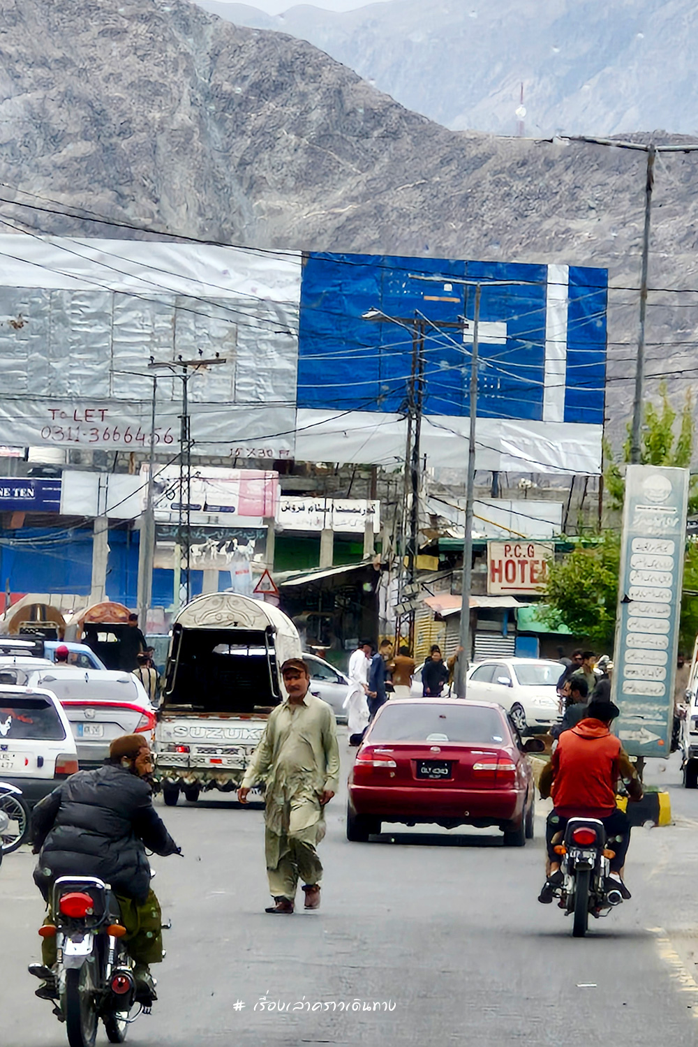 ในที่สุดพวกเรากมาถึง Gilgit เมืองหลวงของเขตกิลกิต-บัลติสถาน ในเวลาบ่ายสองโมง รวมเวลาจาก Skardu มาถึง Gilgit 5 ชม. กับระยะทาง 250 กม. แวะทานกลางวันที่โรงแรม Avari อาหารดี วิวสุดยอด