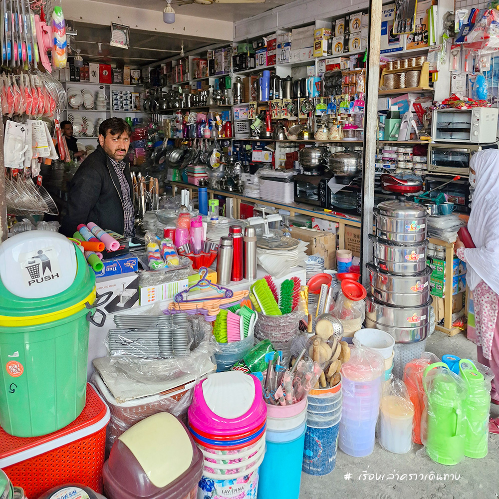 Shopping Time พี่ไกด์บอกว่าวันนี้ให้ช้อปปิ้งกันได้สักครึ่งชม.ก่อนจะออกจากเมืองกิลกิต ก็เลยได้ไปเดินเล่นกันในตลาดขายเสื้อผ้าอารมณ์เหมือนเดินแพลตตินั่ม ราคาชุดปากีสถานที่นี่ถูกมาก คุณภาพก็ตามราคา เสื้อผู้หญิงตัวยาวราคา 2-3,000 รูปี (ประมาณ 3-400 บาท) ถ้าชุดเสื้อพร้อมกางเกงและผ้ายาวก็มีตั้งแต่ 6,000 รูปี ไปจนถึงหลักหมืนรูปี แล้วแต่ผ้าและลวดลาย พวกเราเดินแต่ตึกขายเสื้อผ้าผู้หญิง มองออกไปยังมีตึกอื่นที่ขายของผู้ชายก็มี ขายรองเท้าก็มี
