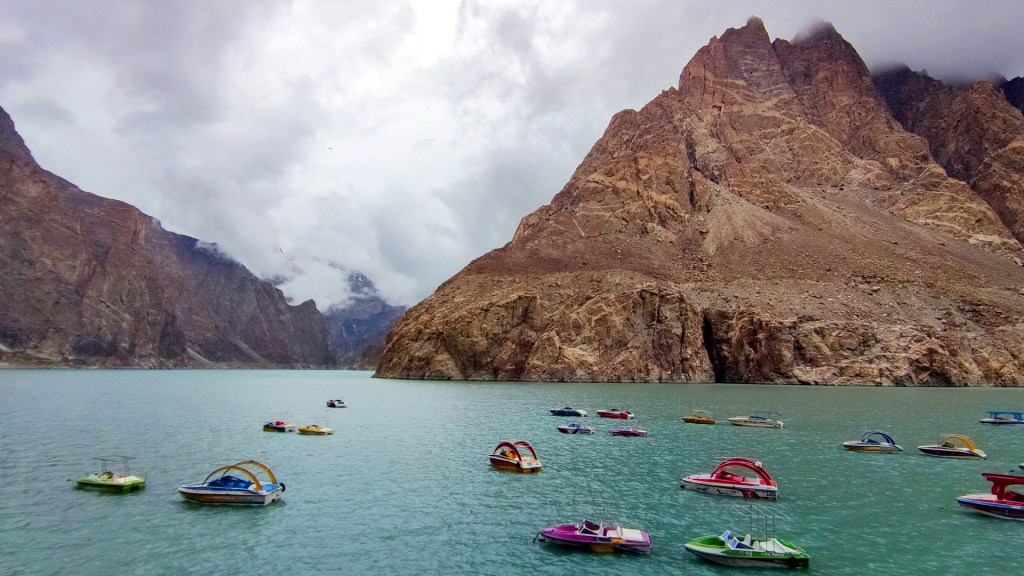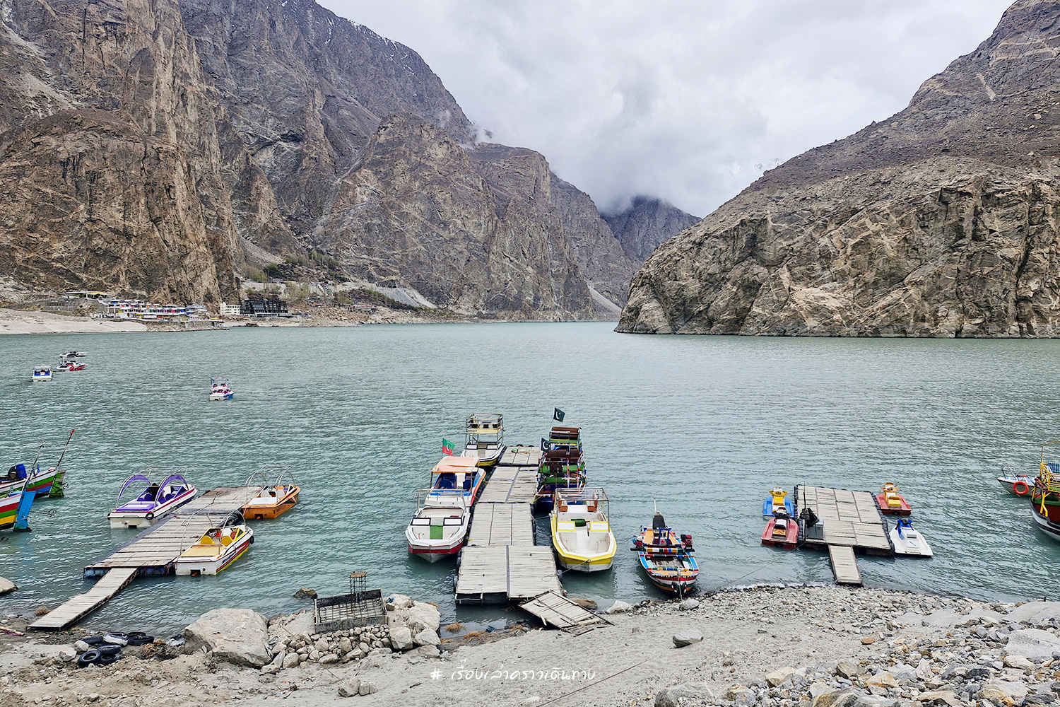 Attabd Lake ทะเลสาบอัตตาบัต เป็นทะเลสาบที่เกิดขึ้นเพราะ Land slide จากเหตุแผ่นดินไหวเมื่อปี 2010 ดินและหินจากภูเขาถล่มลงไปที่หมู่บ้านและขวางทางน้ำของแม่น้ำฮุนซ่า ทำให้กลายเป็นพื้นที่ปิด เกิดเป็นทะเลสาบธรรมชาติที่มีน้ำสีเขียวใสสวยงามล้อมรอบด้วยเทือกเขาสูง คิดแล้วเศร้าว่าความสวยนี้แลกมาด้วยชีวิตของชาวบ้าน