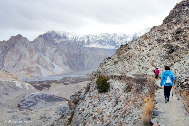 จุดต่อไป คือ Highlight ของวันนี้ พวกเรานั่งรถต่อไปแถบหมู่บ้านพาสสุ | Passu Village เพื่อไปดูธารน้ำแข็งกัน ซึ่งบางทัวร์ก็พาดูไกลลิบๆจากริมถนน บางทัวร์ก็ขับไปใกล้ๆให้พอมองเห็นแต่ก็ยังไกลอยู่ แต่พวกเราจะเดินลัดเลาะริมเขาเข้าไปให้ใกล้ธารน้ำแข็งเลย