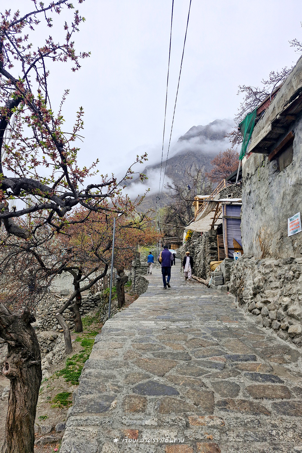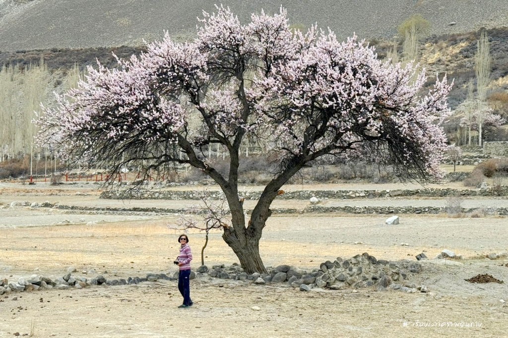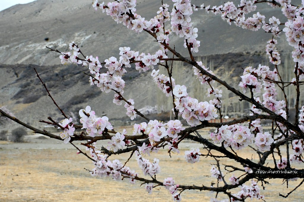 ชมธารน้ำแข็งแล้ว ขากลับพวกเราร้องบอกรถให้หยุดที่หมู่บ้านกลางทาง ที่มีทุ่งแอปปริคอทออกดอกเต็มไปหมด ที่เห็นตั้งแต่ตอนขานั่งรถเข้าไปแล้ว แต่ผ่านไปเดิน Trekking กันก่อน ความสวยงามของมันคือมีฉากหลังเป็นเทือกเขาสูงใหญ่ มีบ้านที่สร้างด้วยหินเป็นองค์ประกอบ มองไปทางไหนก็ชอบ ถ่ายรูปออกมาไม่สวยเท่าตาเห็นจริงๆ