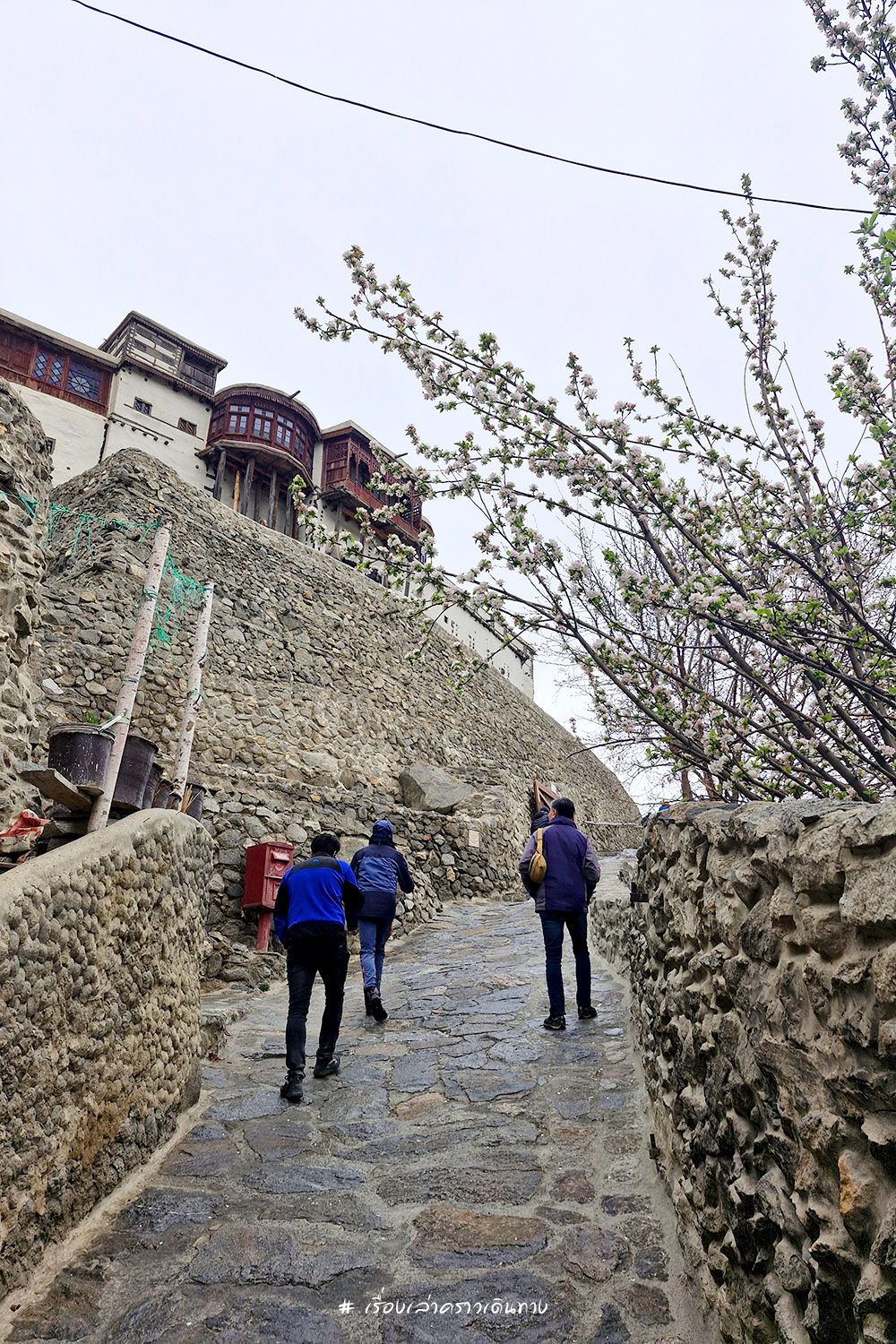Shigar Fort ป้อมปราการชิการ์ เป็นป้อมปราการของผู้ปกครองเมืองเมื่อกว่า 400 ปีก่อน ในยุค Amacha Dynasty ตัวป้อมปราการไม่ได้ใหญ่โต เดินดูด้านใน 3 ชั้นแป๊บเดียวก็ทั่ว แต่ด้านนอกทั้งด้านหน้าและด้านหลัง มีสวนที่ตอนนี้มีดอกไม้บานเต็มต้น ก็เหมือนที่ร้านอาหาร คือต้นที่ดอกขาวๆคือ เชอรี่ ต้นสีชมพูก็คือ พีช พอมันอยู่รวมกันเยอะๆก็สวยดี ยังคงเสียดายที่วันนี้ไม่มีแดด ปัจจุบันป้อมปราการชิการ์เปิดบางส่วนเป็นห้องพักโดยเป็นที่พักในเครือ Serena Hotel Group เครือโรงแรมชั้นนำของปากีสถาน