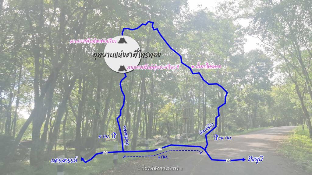 อุทยานแห่งชาติไทรทอง อ.หนองบัวระเหว จ.ชัยภูมิ เข้าได้ 2 ทาง เลี้ยวคนละแยก ขึ้นไปถึงคนละจุด