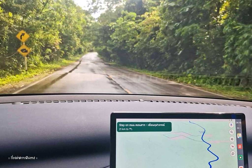 จากอช.ไทรทองมีเส้นทางตัดไปอ.คอนสาร ตัดเข้าถนนคอนสาร-เขื่อนจุฬาภรณ์ ระยะทางประมาณ 200 กม. เป็นเส้นที่ใกล้สุด แต่เป็นถนนเส้นเล็กหน่อย แต่พวกเราต้องเข้าไปชาร์จรถที่อ.เมืองชัยภูมิก่อน แล้วต้องขับต่อไปผ่านเข้าอ.ชุมแพ จ.ขอนแก่น เพื่อชาร์จรถอีกครั้ง (ด้วยเหตุผลเรื่องระยะทางไปและกลับแบตจะไม่พอ เรื่องนี้เป็นมหากาพย์เรื่องการชาร์จรถ จะเล่าไว้ใน FB page แล้วกัน) สรุปว่าเราจำเป็นต้องขับรถอ้อมเพิ่มไปอีกเกือบ 70 กม. รวมเป็น 270 กม.