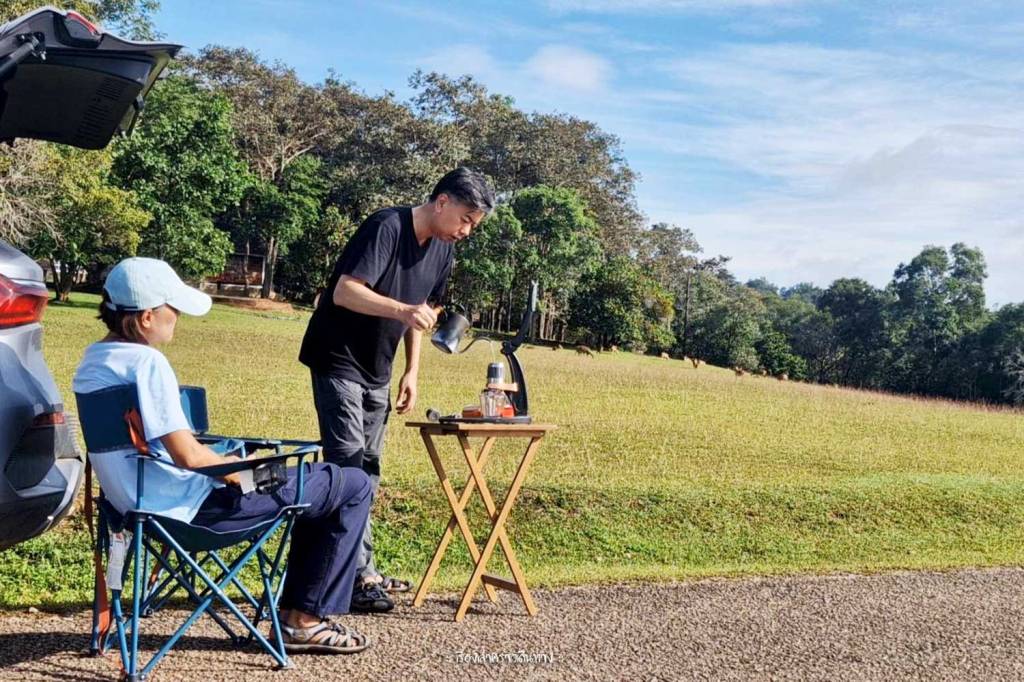 เดินถ่ายรูปจนพอใจก็มานั่งพัก จิบกาแฟ จิบน้ำ สูดอากาศให้เต็มปอดก่อนกลับ
