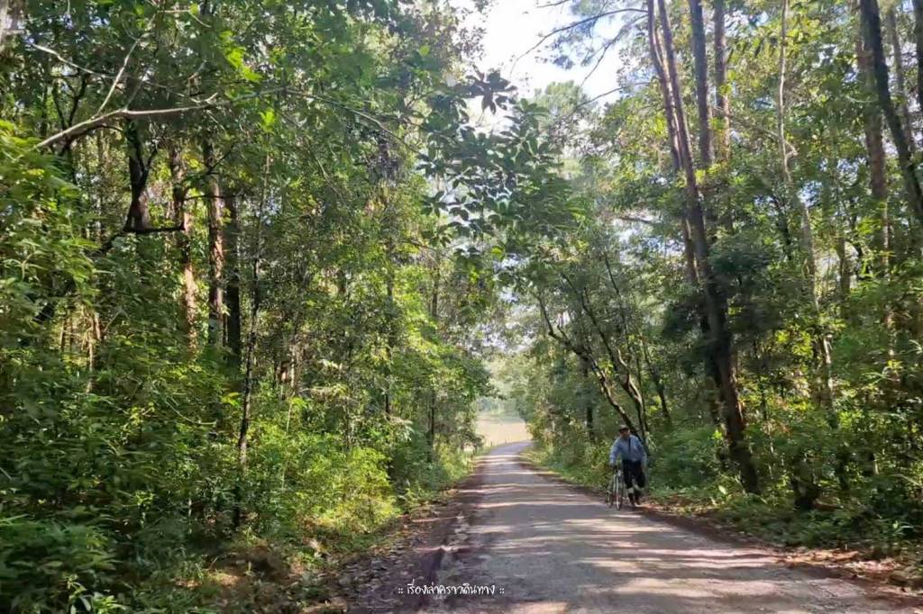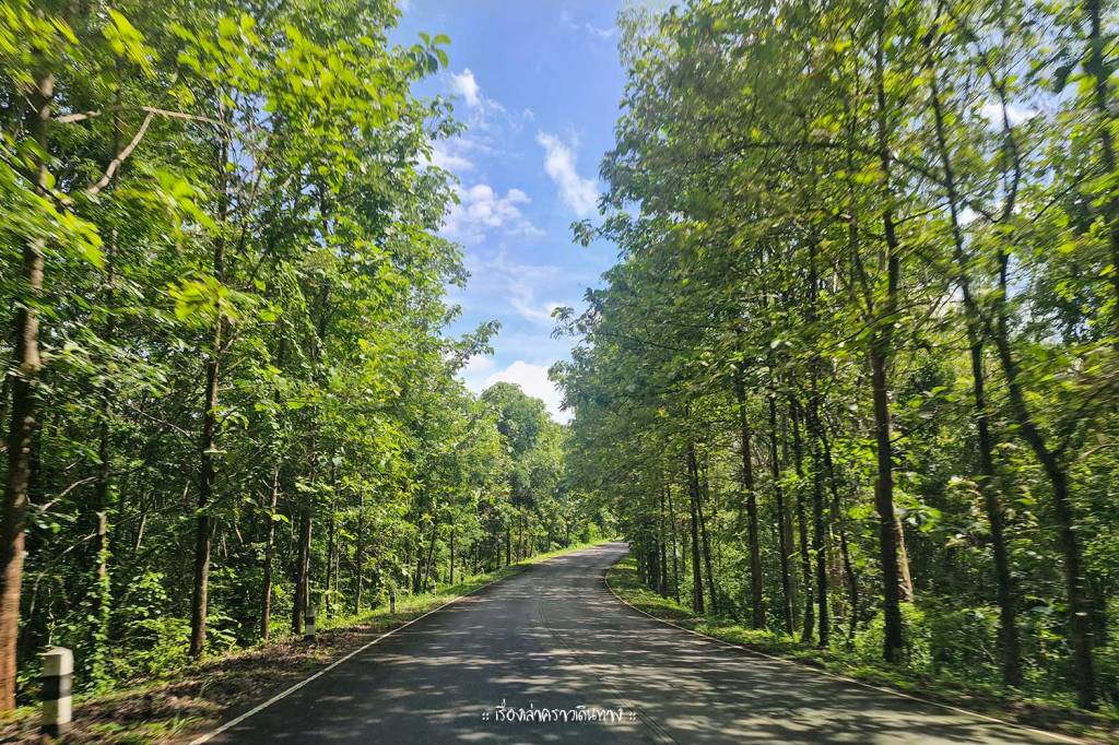 ถนนเส้นคอนสาร-เขื่อนจุฬาภรณ์เลาะเลียบเขตพื้นที่ป่า ต้นไม้ใหญ่โตร่มรื่น สบายตามากๆ
