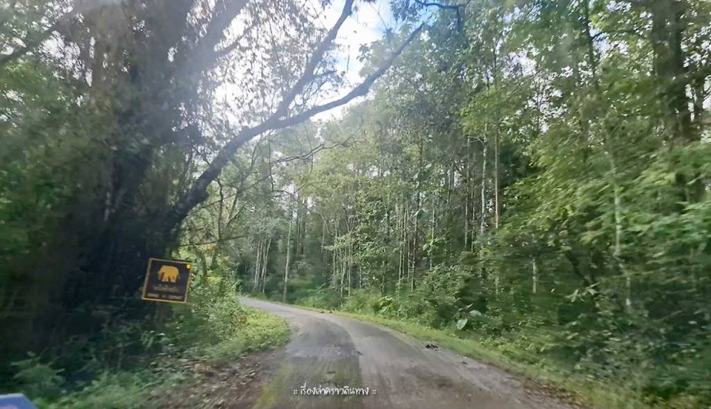 ถนนก็ดีบ้างไม่ดีบ้าง มีป้ายบอกระวังสัตว์ป่า เป็นรูปช้างซะด้วย แต่ไม่มีโผล่มานะ