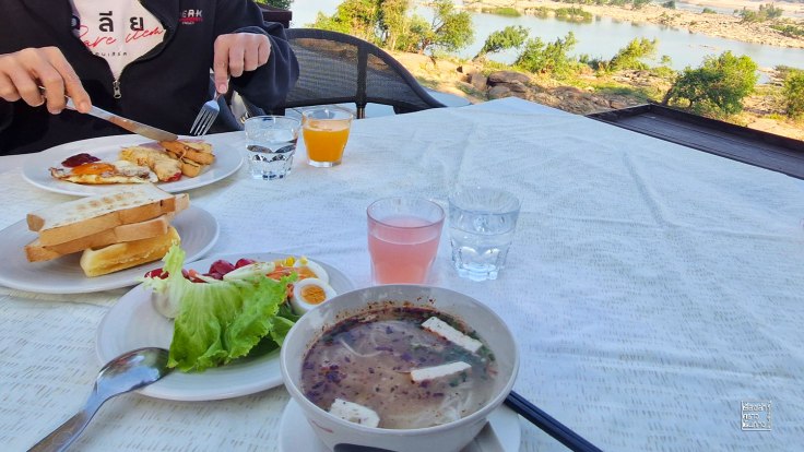 มาโขงเจียมคราวนี้ เลือกพักที่ ทอแสง โขมเจียม เหมือนทุกครั้งที่มาโขงเจียม ที่พักยังสวยงาม คอยปรับปรุงให้ดูใหม่ บรรยากาศดีเหมือนเดิม และปรับเปลี่ยนขยายพื้นที่ออกไปเป็นส่วนคาเฟ่ริมน้ำโขงที่มีสนามหญ้ากว้างๆให้นั่งเล่น อาหารเช้าที่รวมในค่าห้อง ยังคงอร่อยและหลากหลายเหมือนเดิม และที่นี่มีที่ชาร์จรถไฟฟ้าด้วยของ ABB EV Charger ขนาด 22kW ชาร์จช้าแต่พักที่นี่ก็ชาร์จทิ้งไว้ได้เลย ถึงชาร์จจากที่เชื่อนสิรินธรมาแล้ว แต่ตอนเย็นขับไปเที่ยววัดภูพร้าวมา ก็ขอเติมให้เต็มๆไว้ก่อน ก่อนจะขับไปเที่ยวทางอช.ผาแต้มอีก 2 วัน