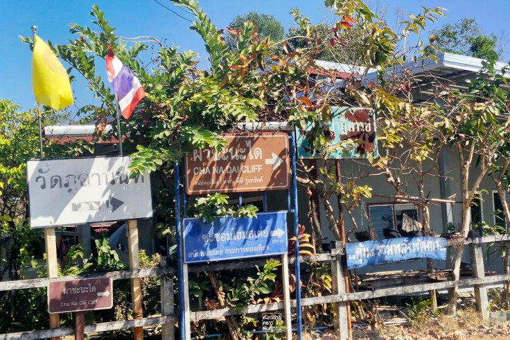 ป้ายบอกทางเล็กมาก แถมแอบตามพุ่มไม้ ถ้าไม่ใช้ GPS ระวังจะหลง