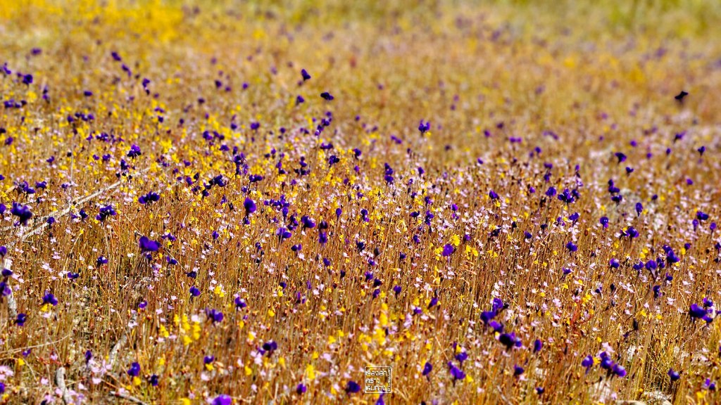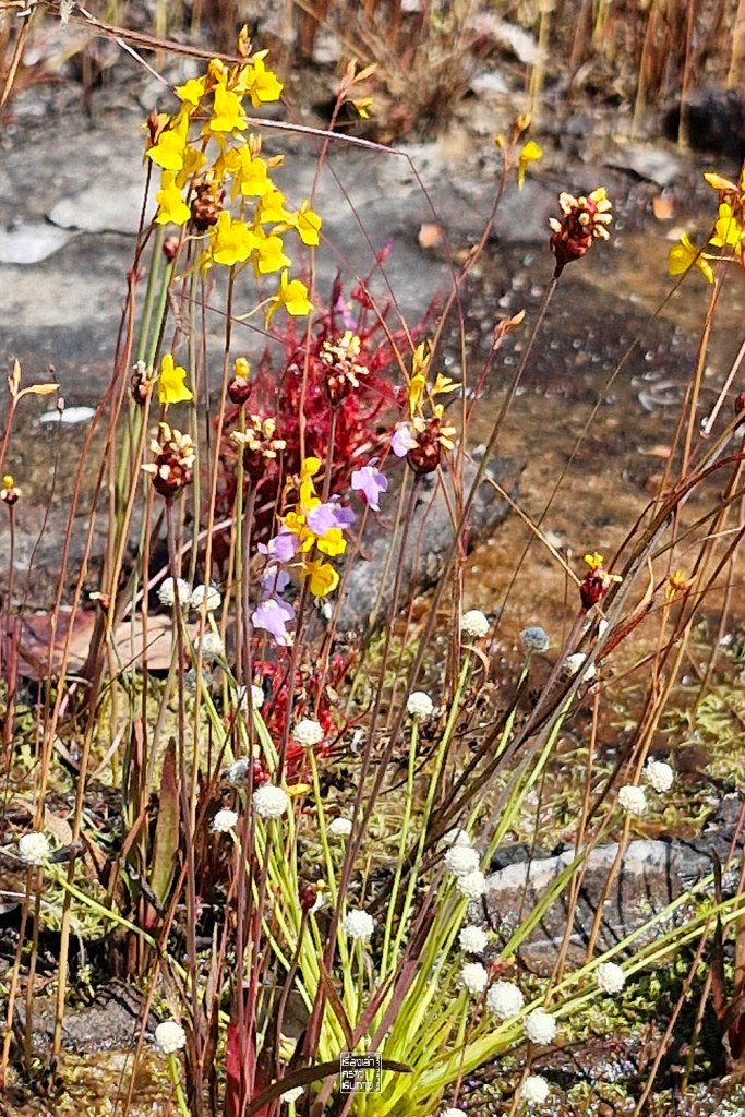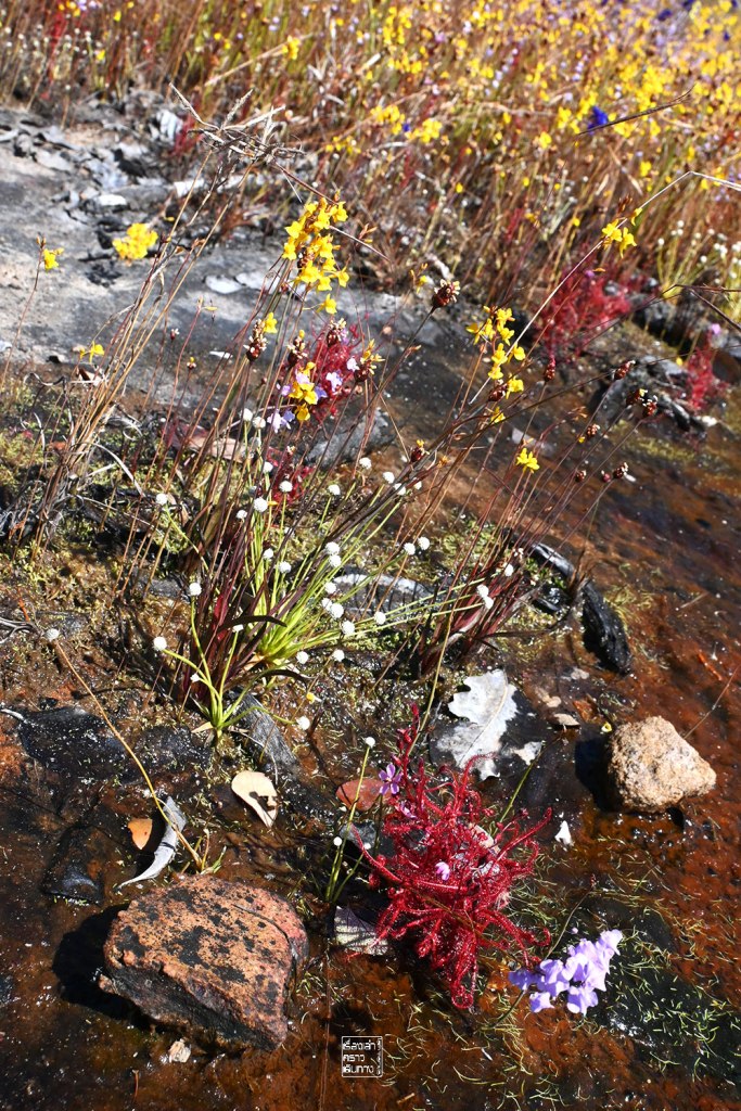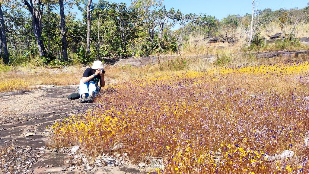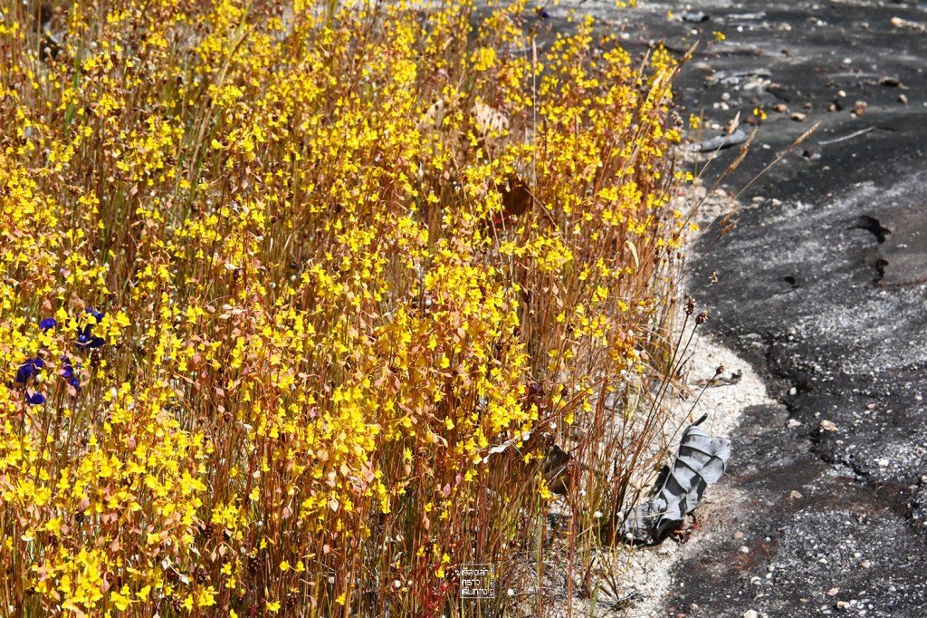 ใกล้ๆหินสามเส้า บังเอิญเจอทุ่งดอกไม้บนลานหิน ที่ไม่คิดว่าจะมีเพราะแล้งมากแล้ว คงเพราะตรงนี้ยังมีน้ำขังเลยพอมีดอกไม้อยู่บ้าง