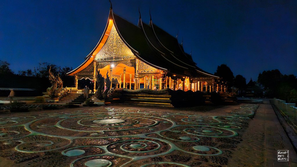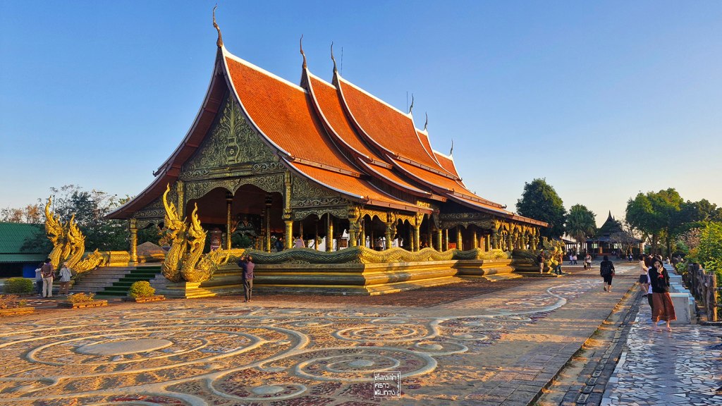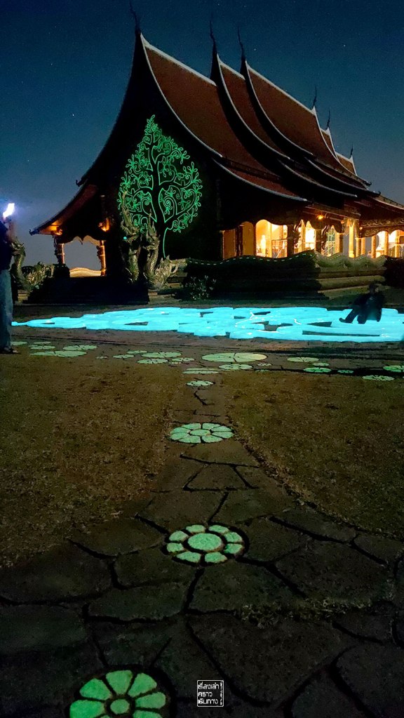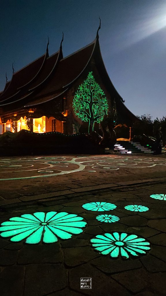 ในบริเวณวัดมีจุดชมวิวได้เป็นมุมกว้างมองเห็นประเทศลาวตลอดแนวแม่น้ำโขง เป็นจุดชมพระอาทิตย์ตกได้ด้วย แต่สิ่งที่ทุกคนตั้งใจมาดู ไม่ใช่วิวแม่น้ำโขง ไม่ใช่พระอาทิตย์ตก แต่เป็นความเรืองแสงของวัดเมื่อพระอาทิตย์ตกไปแล้ว เพราะที่วัดนี้มีการตกแต่งด้วยสารเรืองแสงเป็นลวดลายไว้ที่พื้นรอบๆอุโบสถ ตัวอุโบสถถอดแบบมาจากวัดเชียงทอง หลวงพระบาง แต่มีขนาดใหญ่กว่าและเปิดโล่ง 3 ด้าน ผนังอุโบสถด้านหลังประดับด้วยโมเสคเรืองแสงเป็นรูปต้นกัลปพฤกษ์เหมือนที่วัดเชียงทอง