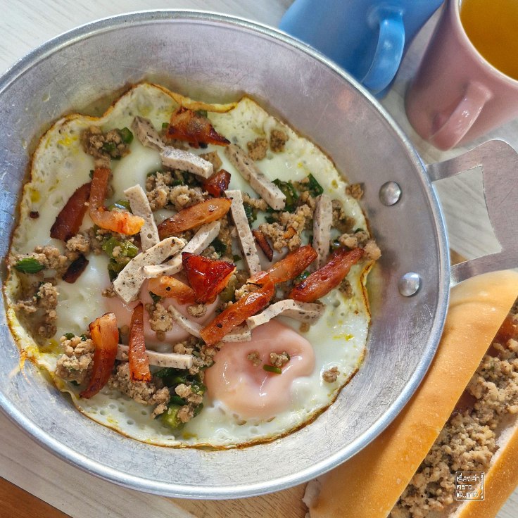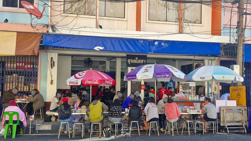 มื้อเช้าแรกในอุบล เลือกไปร้าน อุบลโอชา วันหยุดคนเยอะเต็มร้าน คนส่วนมากสั่งต้มเส้นหรือก๋วยจั๊บญวน ยังรอคิวกันหลายโต๊ะ ไม่อยากรอนานเลยสั่งไข่กระทะกับโอวัลติน รีบกินรีบไป ไม่ได้ชิมต้มเส้นเลย