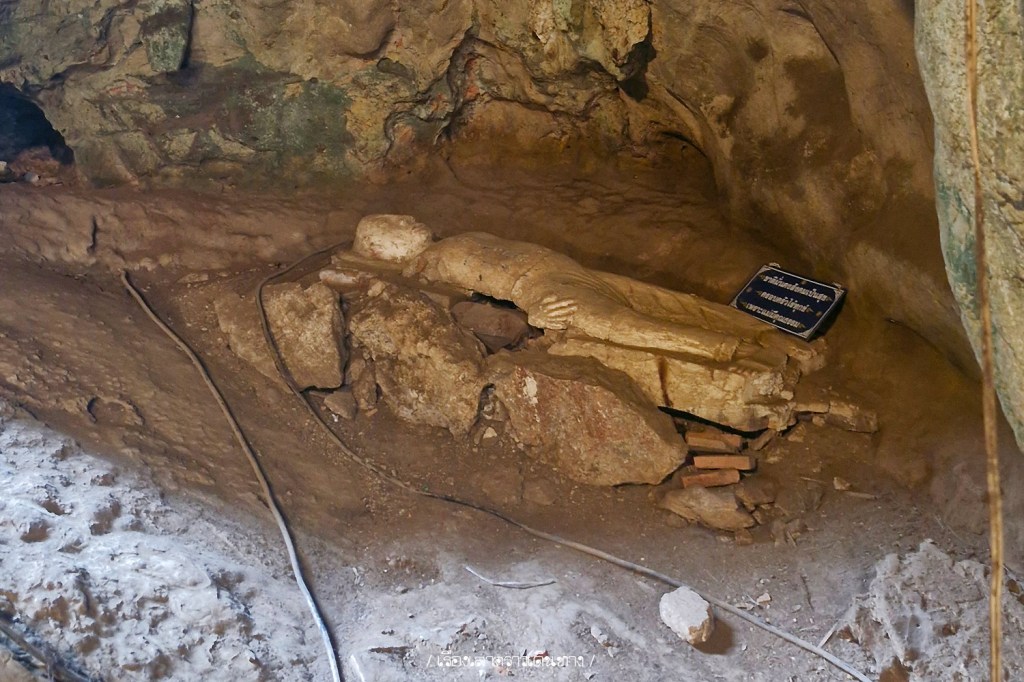 ปูนปั้นรูปคนนอนหงาย เชื่อว่าเป็นทหารเอกทวารบาลที่ทำหน้าที่เฝ้าถ้ำ