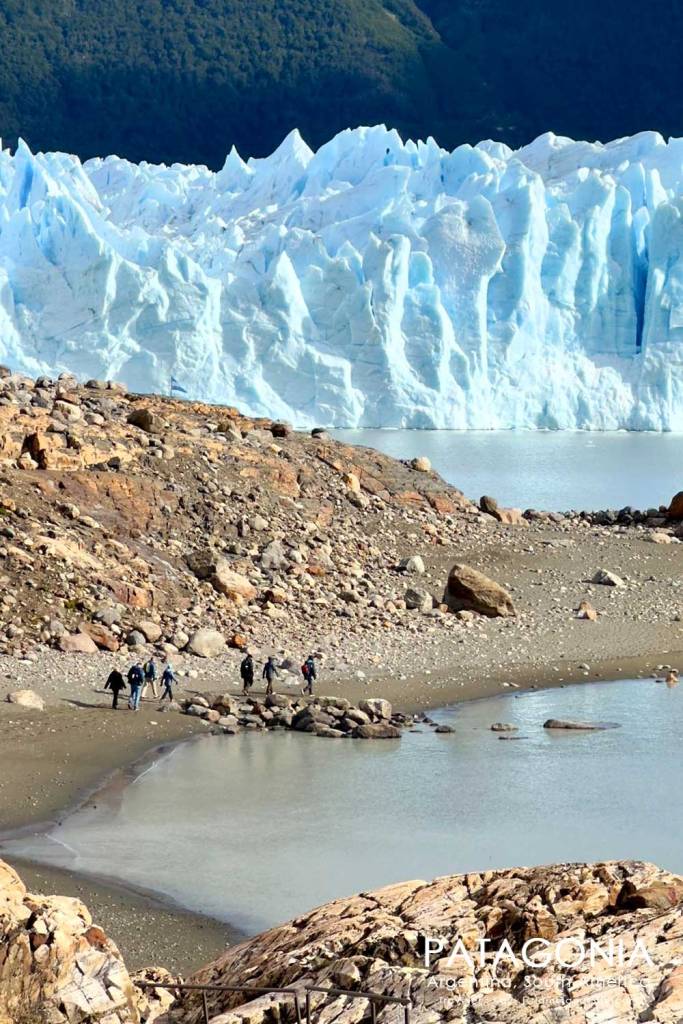 20 minutes navigation boat cruise > views of the glacier’s front walls and the Canal de los Témpanos (Icebergs Channel) > minitrekking on ice to Perito Moreno glacier (2Hrs.)