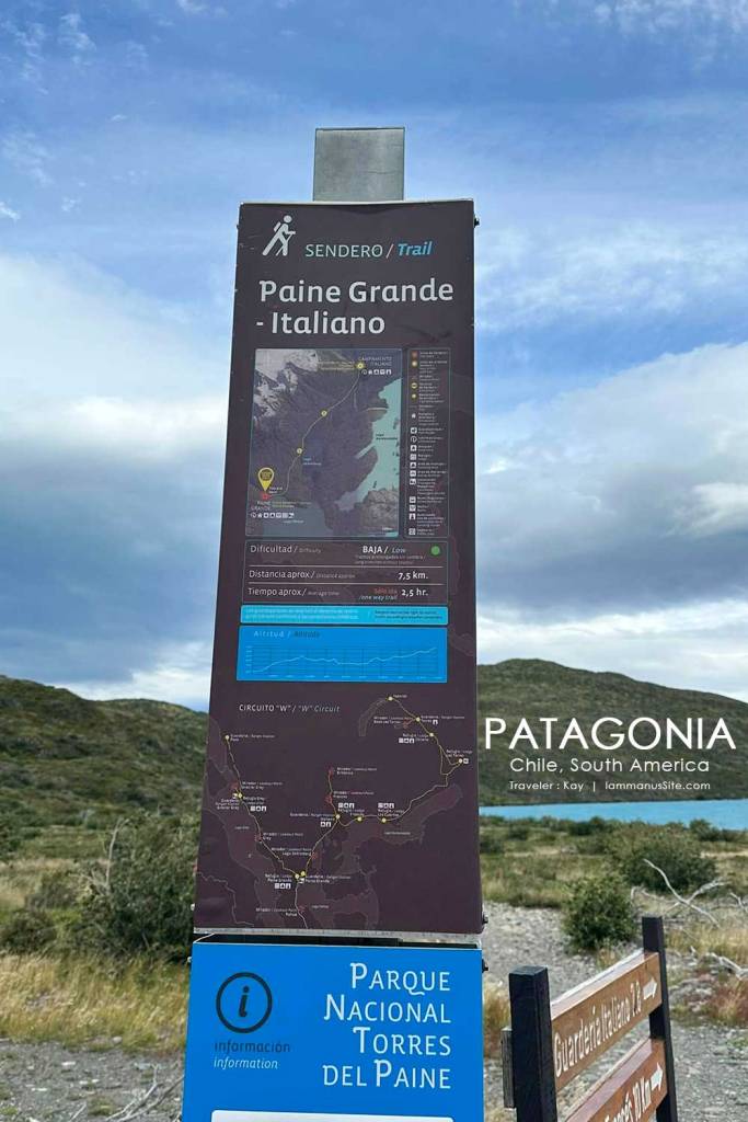 Trail ยอดนิยมของนักท่องเที่ยวใน W trek ที่มาถึงปาตาโกเนียฝั่งชิลีแล้วต้องไปที่จุดชมวิว Mirador Base Las Torres เพื่อได้เห็น The 3 Torres del Paine หรือ The Tower of Paine โดยเริ่มเดินจาก Puerto Natales ไปที่ Mirador Base Las Torres ระยะทาง 11 กม. ที่ช่วง 800 ม.สุดท้ายชันมาก ใช้เวลาเดินไปกลับเกือบ 10 ชม.