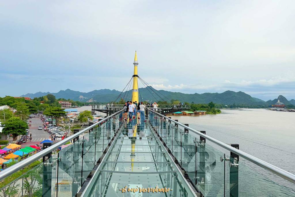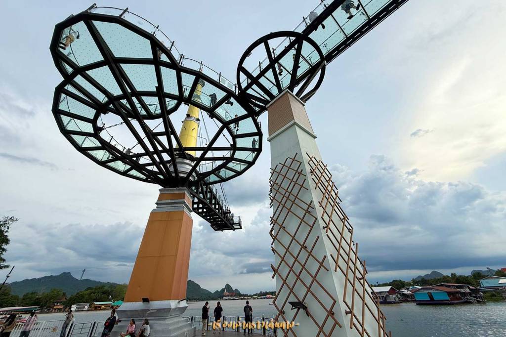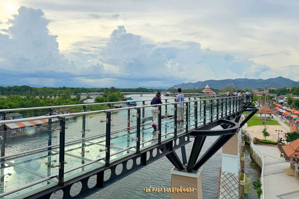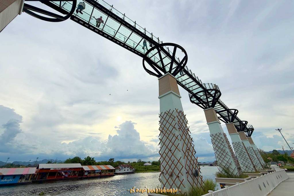 สกายวอล์คกาญจนบุรี ออกแบบและก่อสร้างโดยสำนักงานโยธาธิการและผังเมืองจังหวัดกาญจนบุรี แล้วเสร็จส่งมอบให้เทศบาลเมืองกาญจนบุรีบริหารในปีพ.ศ. 2566 เปิดให้เข้าชมทุกวัน 9:00 น. – 17:00 น. ขึ้นลิฟต์ไปด้านบนเดินออกไปจะเป็นพื้นกระจกทั้งหมด มีด้านซ้ายด้านขวา ยาวไปตามแม่น้ำ มองทิวทัศน์ได้รอบด้าน 360 องศาเลย