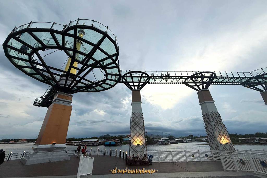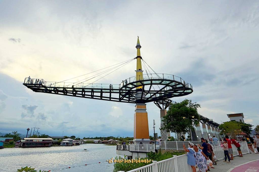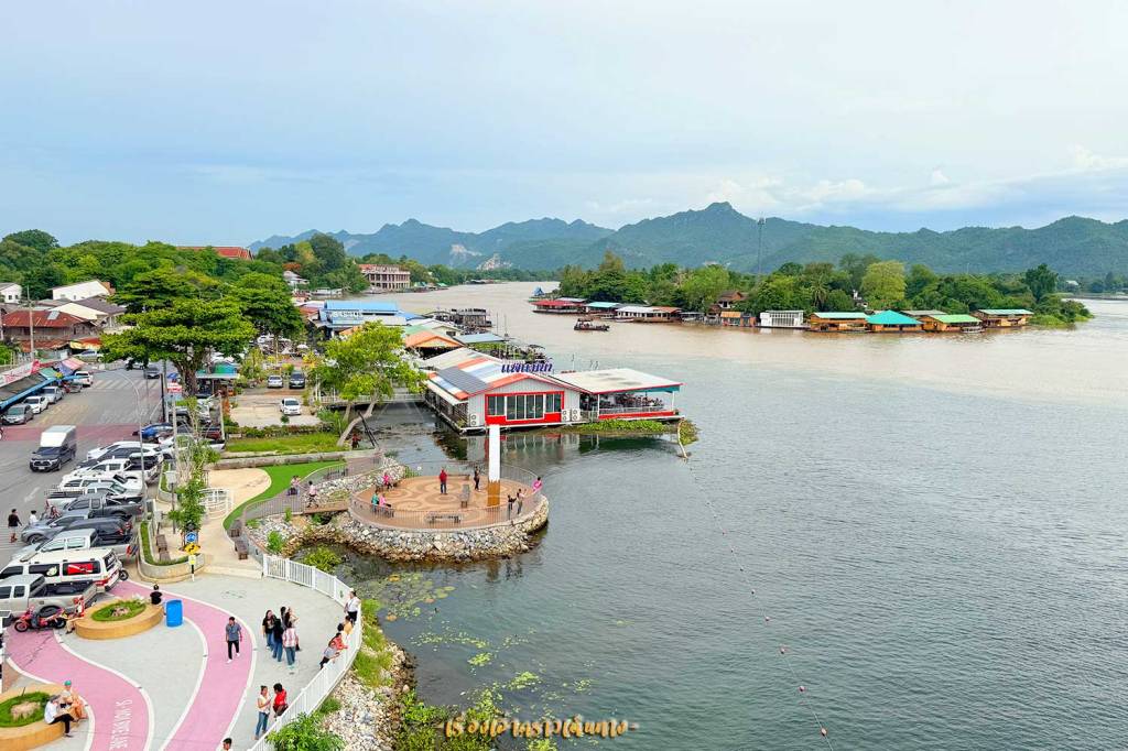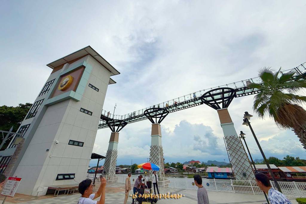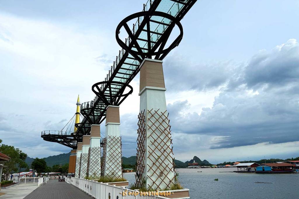 สกายวอล์คกาญจนบุรี ออกแบบและก่อสร้างโดยสำนักงานโยธาธิการและผังเมืองจังหวัดกาญจนบุรี แล้วเสร็จส่งมอบให้เทศบาลเมืองกาญจนบุรีบริหารในปีพ.ศ. 2566 เปิดให้เข้าชมทุกวัน 9:00 น. – 17:00 น. ขึ้นลิฟต์ไปด้านบนเดินออกไปจะเป็นพื้นกระจกทั้งหมด มีด้านซ้ายด้านขวา ยาวไปตามแม่น้ำ มองทิวทัศน์ได้รอบด้าน 360 องศาเลย