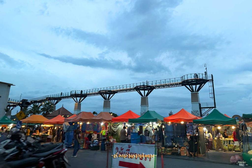 วันเสาร์ช่วงเย็น ด้านล่างมี “ถนนคนเดินสองแคว” เป็นเหมือนตลาดนัดให้เดินเล่น