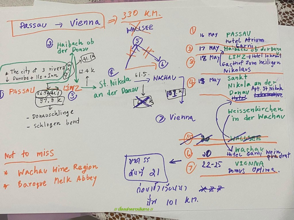 เส้น Danauweg หรือ Danube cycle path (R1) มีป้ายบอกเส้นทางที่ชัดเจน แทบไม่ต้องใช้แผนที่ก็ไม่หลง แต่ก็มีเรื่องท้าทายคือการเลือกเส้นทางระหว่างฝั่งซ้ายหรือขวาของแม่น้ำ ต้องทำการบ้านและวางแผนเส้นทางพอสมควร และในบางช่วงต้องมีการข้าม Ferry ซึ่งต้องมีข้อมูลตารางเวลาที่ชัดเจน ทริปนี้ใช้ app Komoot ในการวางแผนเส้นทาง ระหว่างทางมี Museum ให้เยี่ยมชมหลายแห่ง ระบบการบริการจัดการ Museum ดีมากและมีห้องน้ำสะอาดให้บริการ รวมทั้งการอำนวยความสะดวกเรื่องการเติมน้ำดื่มด้วย