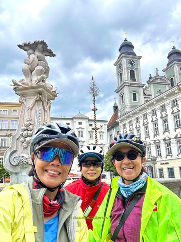 สมากชิกช่วง Passau – Vienna ทั้ง 3 คน ปั่นถึง Linz / Center of Linz