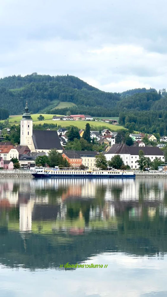 ผ่านเมือง Grein สวยมาก โดยเฉพาะวิวของเรือ Cruise ที่จอดอยู่แถวเมือง Grein คนปั่นจักรยานส่วนใหญ่เป็นนักท่องเที่ยวที่มากับเรือ Cruise