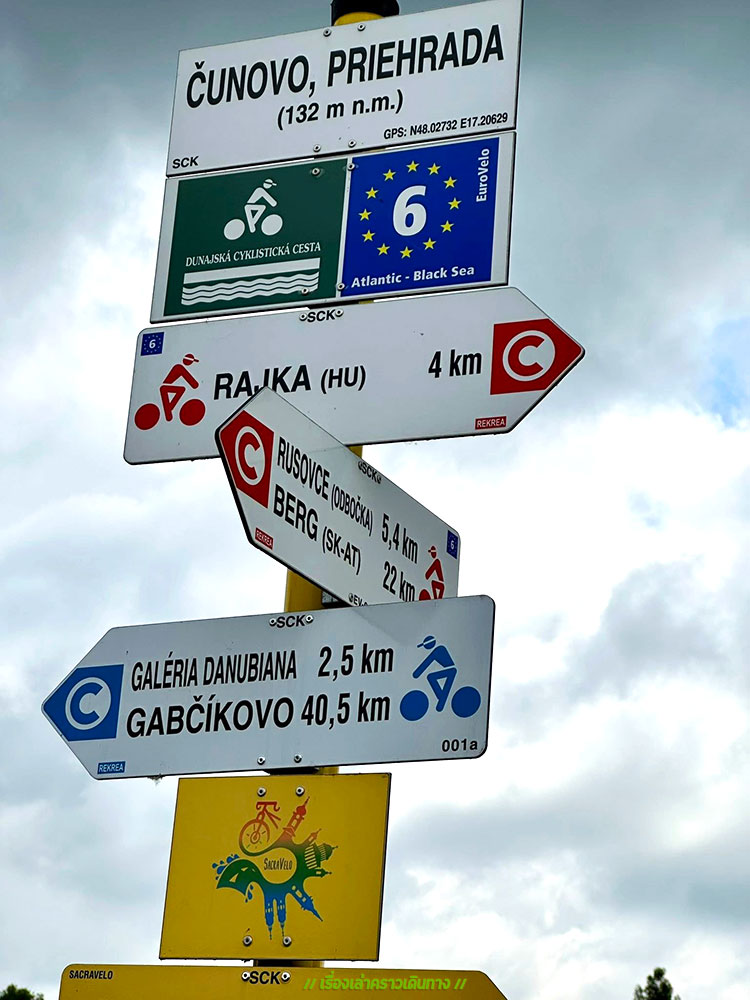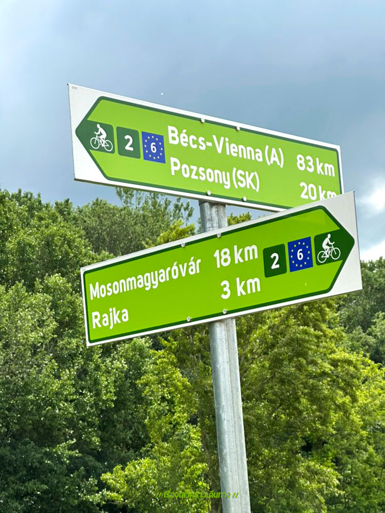 เส้นทางจักรยานออกจาก Slovakia เข้า Hungary ใช้ Eurovelo 6 (Atlantic-Black Sea) ออกจาก Bratislava มาประมาณ 20 กิโลเมตร ผ่านเส้นข้ามแดนมาถึงเมืองแรกของ Hungary คือเมือง Rajka