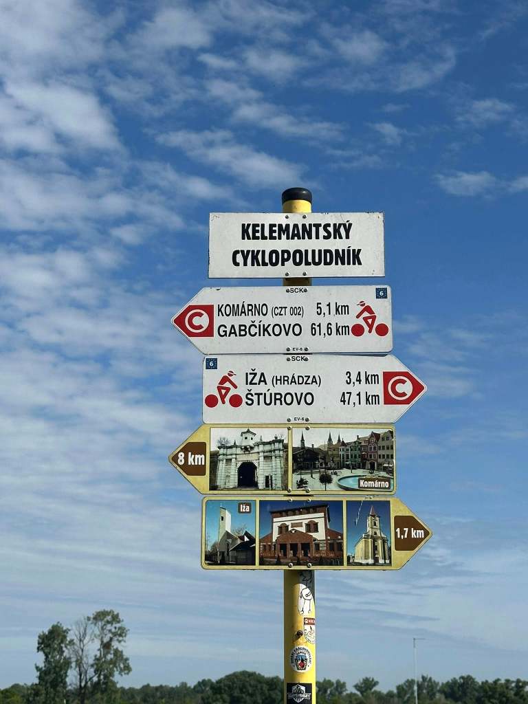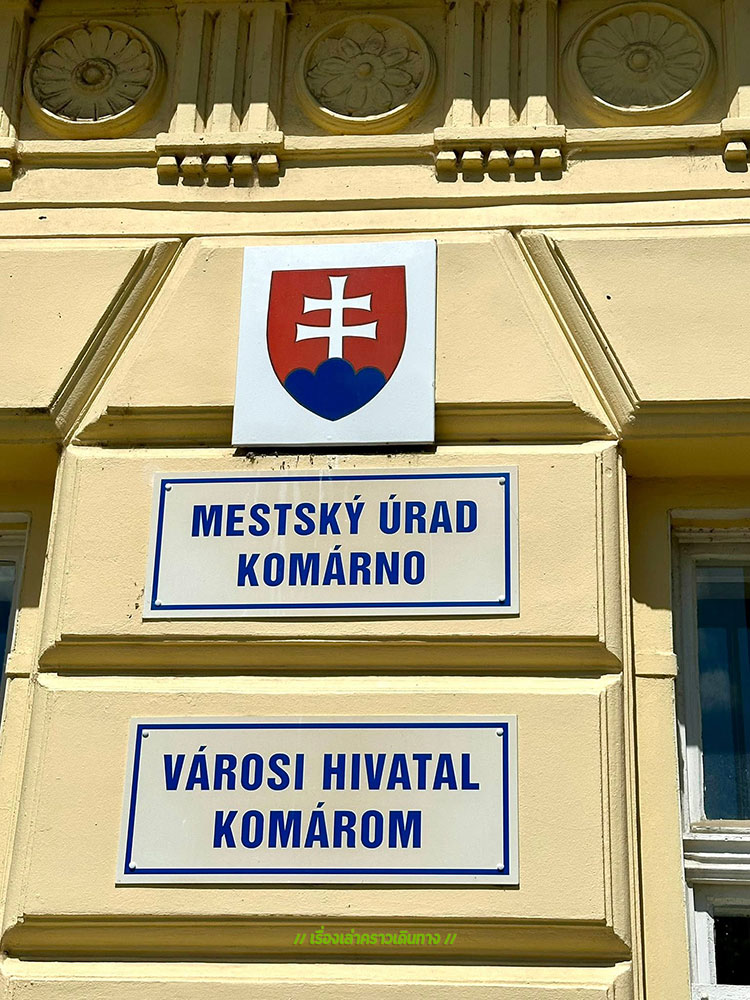 ตอนวางเส้นทางจะปั่นมาเมืองนี้ค่อนข้างสับสนระหว่างชื่อ Komárom กับ Komárno สรุปเป็นเมืองเดียวกันแต่อยู่คนละประเทศ มีสะพานเล็กเชื่อมพรมแดนระหว่างสองประเทศ จากเมือง Gyor ฝั่ง Hungary ไปเมือง Komárom แล้วข้ามสะพานไปเมือง Komárno ฝั่ง Slovakia ระยะทาง 52 กิโลเมตร เส้นชายแดนช่วงนี้ระหว่าง Hungary และ Slovakia อยู่ระหว่างกลางแม่น้ำดานูบ เลือกพักที่เมือง Komárno ฝั่ง Slovakia เมืองน่ารักกว่าฝั่ง Hungary ข้ามมาฝั่ง Slovakia ใช้เงินสกุลยูโร พอเดินข้ามสะพานไปกินข้าวฝั่งฮังการีเปลี่ยนสกุลเงินเป็นโฟรินต์ (Hungarian forint, HUF)