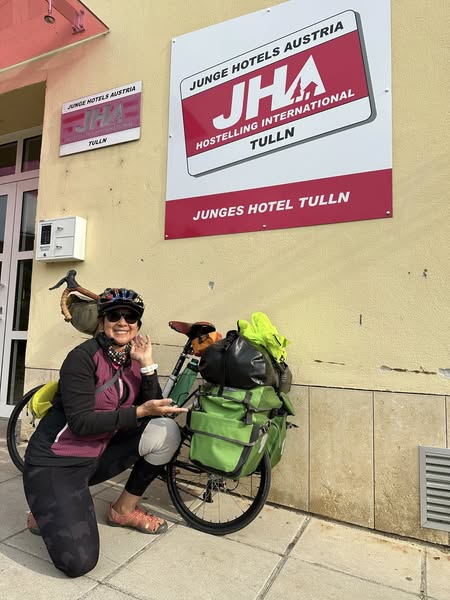 ปั่นออกจากเมือง Weibenkirchen ไปเมือง Tulln ระยะทาง 67 กิโลเมตร พวกเราสามสาวท้าทายกันว่าอยากจะปั่นให้ถึงเวียนนาเลยระยะทางรวม 100 กิโลเมตร แต่พอถึงเมือง Tulln ก็ตัดสินใจว่าจบแค่ 67 กิโลเมตรดีกว่าเหลือไว้วันพรุ่งนี้ปั่นเข้าเวียนนาอีกประมาณ 40 กิโลเมตร โชคดีได้ที่พักที่ Youth Hostel ในเมือง Tulln ราคาดีมาก ห้องกว้างใหญ่ อยู่ติดแม่น้ำดานูบเลย เดินออกไปในอาคารมีแต่นักเรียนมาพัก พวกเราเลยต้องทำตัวเป็น Teachers ไป