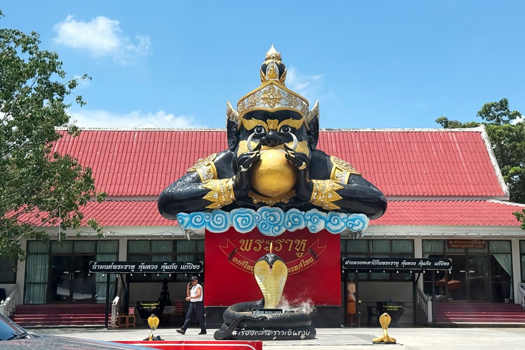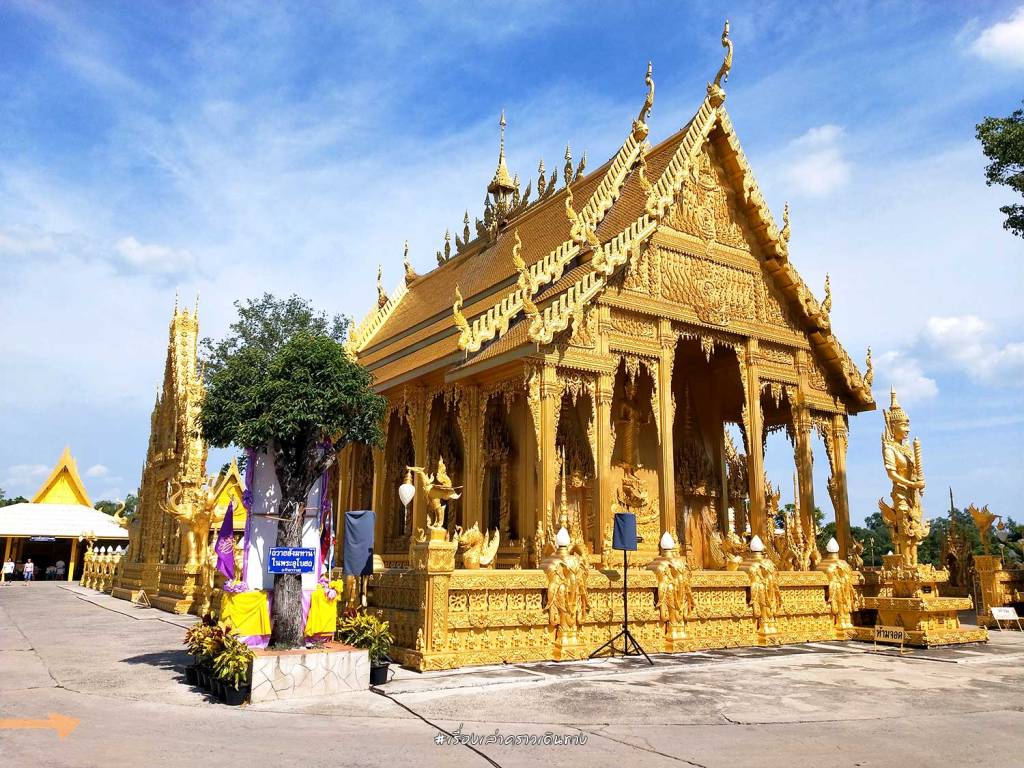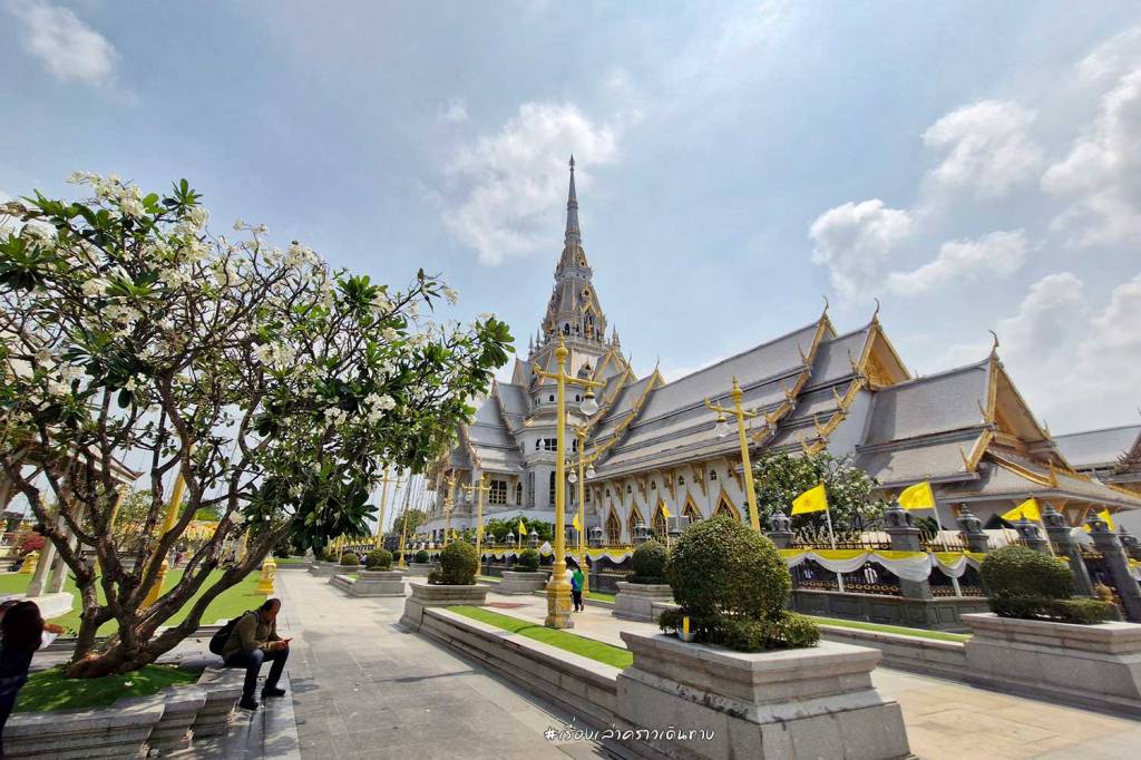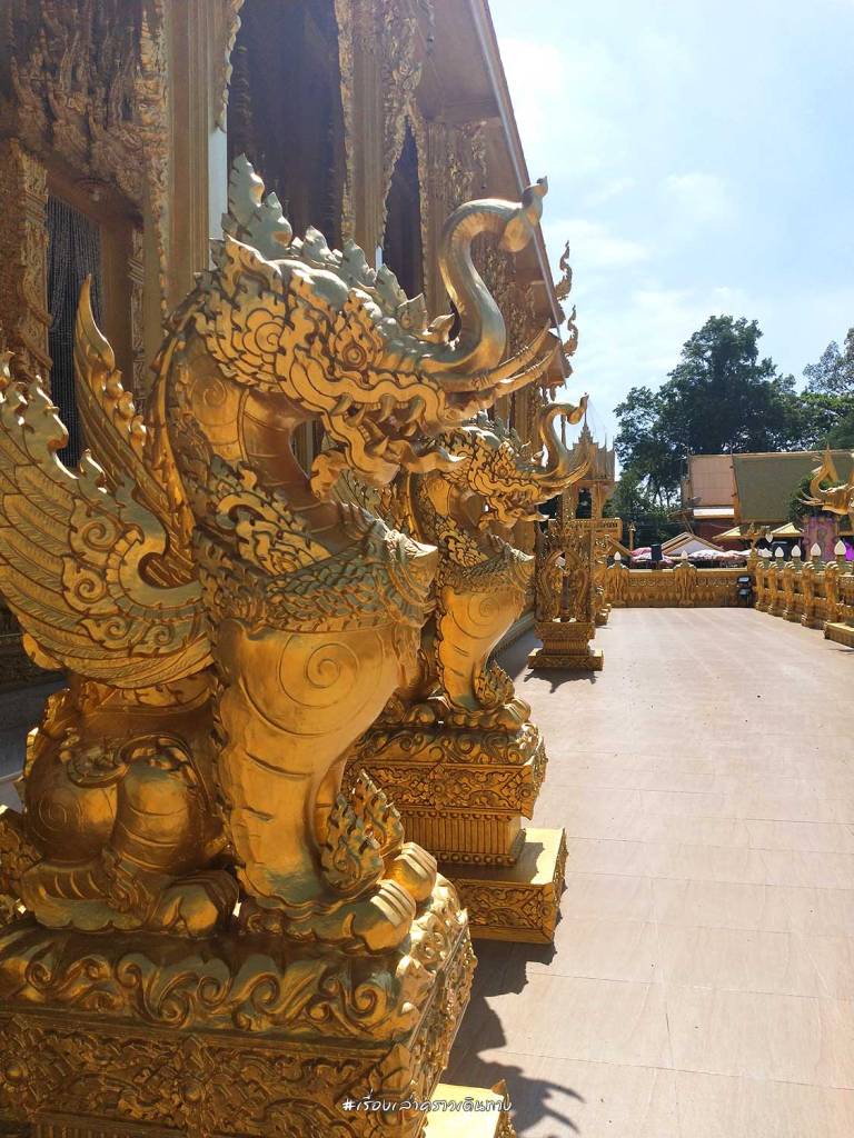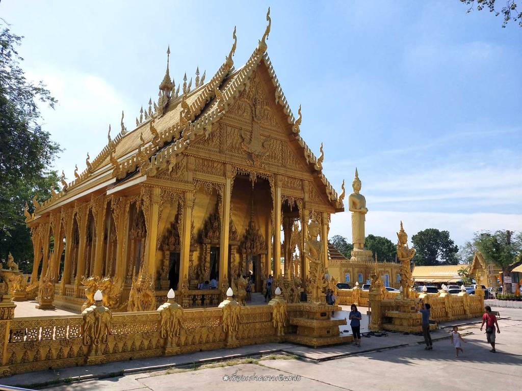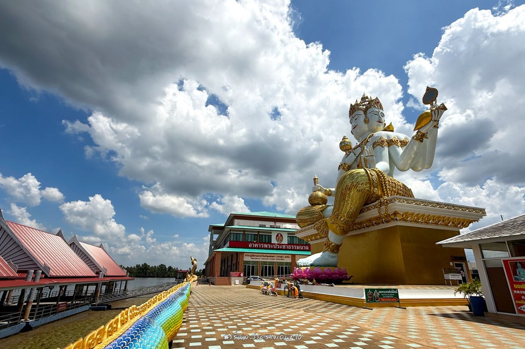 เจดีย์สีทองขนาดใหญ่ของ “พระอุโบสถมหาเจดีย์” ประดิษฐานพระบรมสารีริกธาตุจากประเทศอินเดีย / องค์พระพิฆเนศขนาดสูงใหญ่ มองเห็นได้จากริมถนน