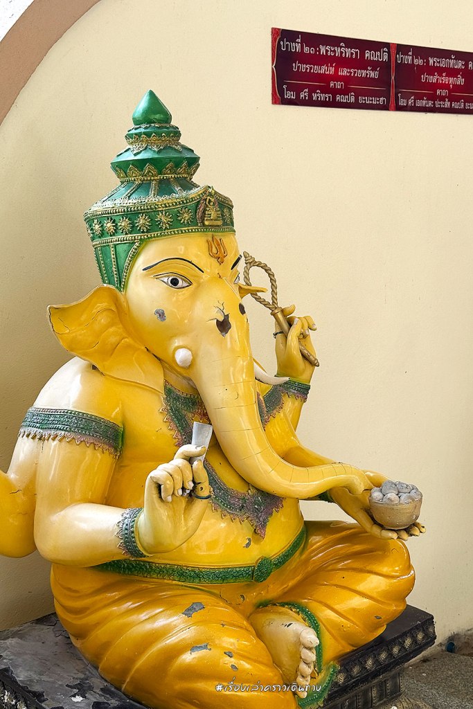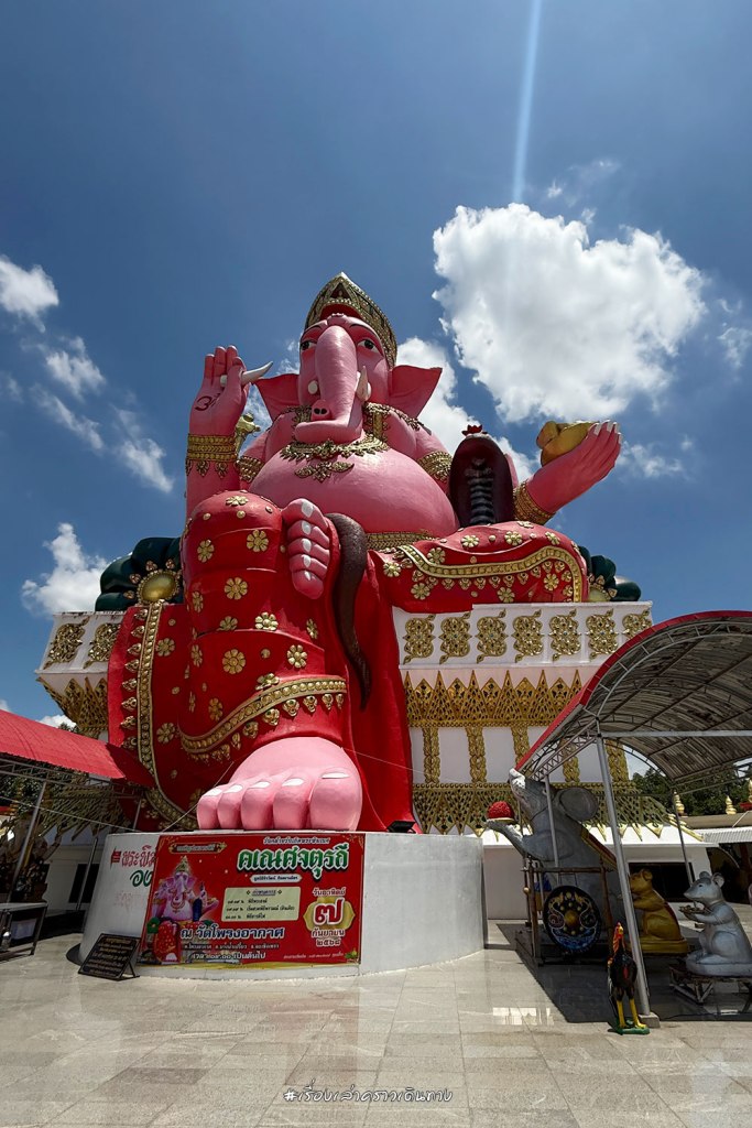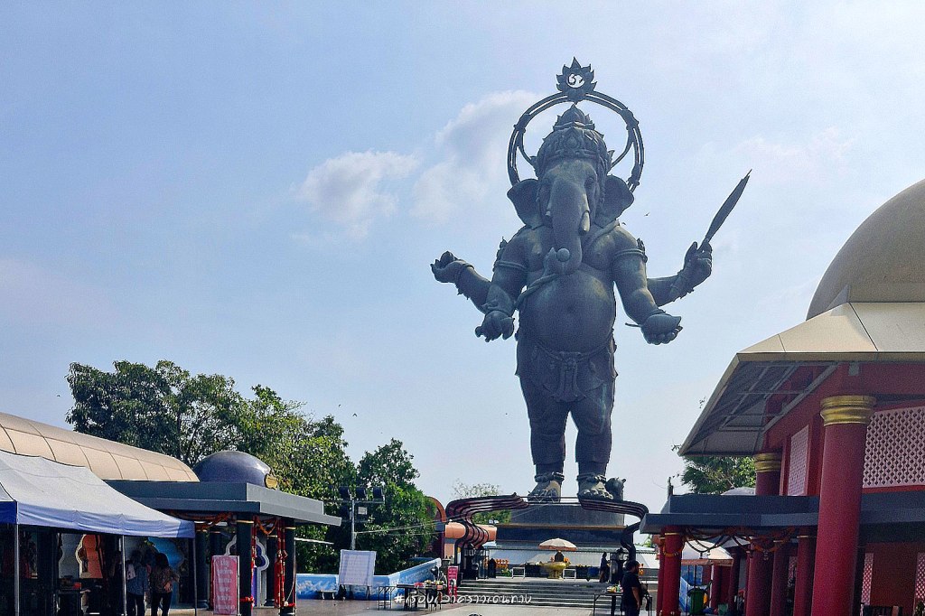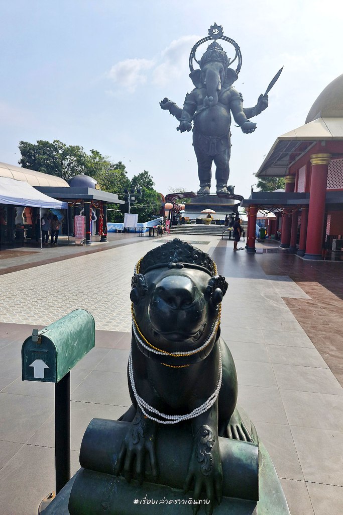 พระพิฆเนศองค์ยืน ปางสัมฤทธิ์ ทำจากสำริด สูง 30 เมตร รวมฐานแล้วสูง 39 เมตร เป็นพระพิฆเนศองค์ยืนที่สูงที่สุดในโลก (ข้อมูลจาก ganeshthailand.com) มีคำแนะนำในการขอพรพระพิฆเนศด้วย ว่าหากต้องการสิ่งใดก็ควรถวายของบูชาให้เหมาะสม เช่น ถวายน้ำผึ้ง เพื่อได้รับพรให้ประสบความสำเร็จ หรือ ถวายเนยกี เพื่อขอพรให้ได้เป็นที่รัก เป็นต้น รวมกับของบูชาทั่วไป อย่างธูป เทียน น้ำมันตะเกียง ดอกไม้ ผลไม้ ซึ่งทุกอย่างมีบริการให้ซื้อบูชา เคล็ดลับอีกอย่างที่มีคนบอกคือ เมื่อขอพระพิฆเนศแล้วให้มากระซิบบอกกับหนู เพราะหนูเป็นบริวารของพระพิฆเนศ และเป็นตัวสื่อสารให้กับเราด้วย ก็เลยจะเห็นคนไปยืนกระซิบกระซาบที่รูปปั้นหนูกันตลอด