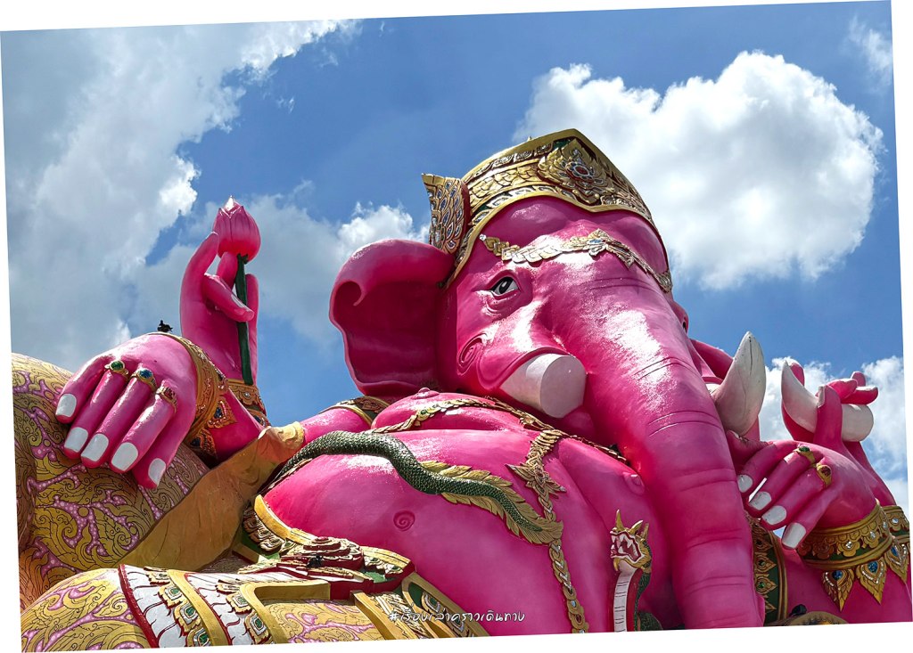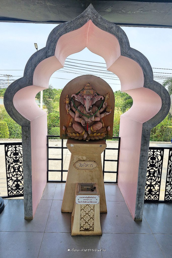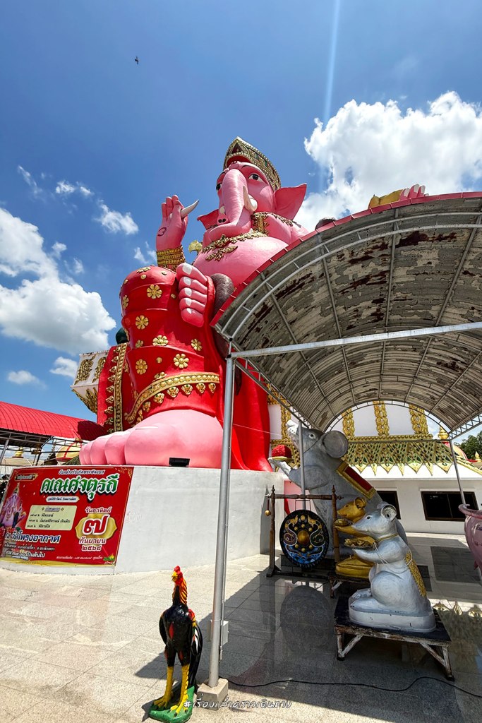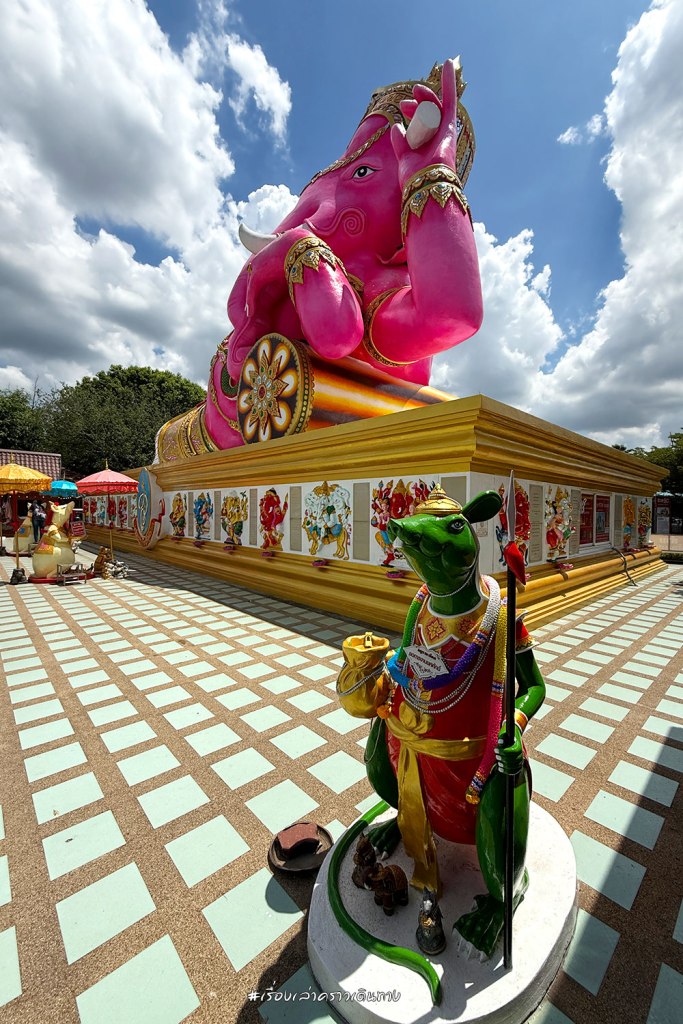 พระพิฆเนศปางนั่งประทานพร องค์สีชมพูขนาดใหญ่สูง 49 เมตร กว้าง 19 เมตร มีหัตถ์ 4 กร มีงูใหญ่สีดำอยู่ข้างเอว บนศีรษะสวมหมวกที่ด้านหน้าหมวกมีรูปองค์หลวงพ่อโสธรจำลอง รอบๆองค์พระพิฆเนศเป็นระเบียงที่รูปปั้นพระพิฆเนศ 35 ปาง เดินดูได้รอบ ด้านหน้ามีรูปปั้นหนู่ ให้เข้าไปกระซิบบอกคำขอพระพิฆเนศได้เหมือนทุกๆที่