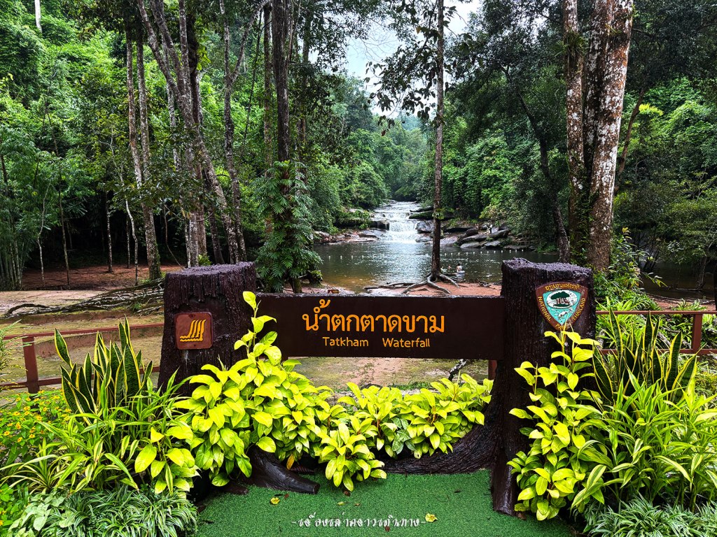 บริเวณน้ำตกตาดขาม บรรยากาศดี กว้างขวาง น้ำตกใหญ่สวยงาม มีแอ่งให้เล่นน้ำได้กว้าง ถ้าฝนไม่ตกน่าจะมีคนมาเที่ยวเยอะ แต่ถึงฝนตกก็ยังมีวัยรุ่นมาเล่นน้ำ มาปิคนิคกันอยู่