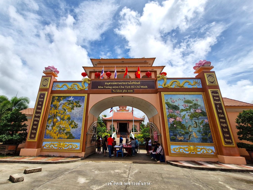 ไม่ห่างกับบ้านลุงโฮฯมี อนุสรณ์สถานประธานโฮจิมินห์ ที่เพิ่งสร้างใหม่ใหญ่โต พื้นที่กว้างขวางกว่า 7 ไร่ เป็นพื้นที่ราชพัสดุที่รัฐบาลไทยมอบให้ใช้ในการก่อสร้าง มีศาลาให้ขึ้นไปเคารพรูปปั้นท่านโฮจิมินห์ มีตึกพิพิธภัณฑ์แสดงภาพชีวประวัติและหุ่นขี้ผึ้งจำลอง มีร้านขายของที่ระลึก มีให้เช่าชุดอ่าวหญ๋ายให้ใส่ถ่ายรูป แถมมีจำลองบ้านลุงโฮไว้ด้วย สร้างเหมือนที่บ้านลุงโฮเดิมเปี๊ยบ ทั้งลักษณะบ้าน 3 หลัง และแผนผังบ้าน พิพิธภัณฑ์โฮจิมินห์ก่อสร้างขึ้นจากความร่วมมือของรัฐบาลไทยและรัฐบาลเวียดนาม เปิดอย่างเป็นทางการเมื่อวันที่ 19 พฤษภาคม 2559 ซึ่งเป็นวันครบรอบ 126 ปี วันคล้ายวันเกิดของอดีตประธานาธิบดีโฮจิมินห์ด้วย ที่นี่ก็ไม่เก็บค่าเข้าเหมือนกัน มีแค่กล่องรับบริจาคอยู่ตรงทางเข้า