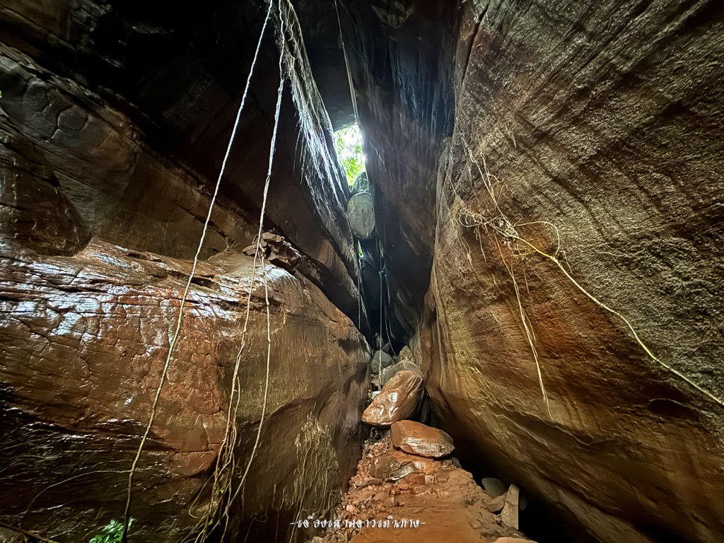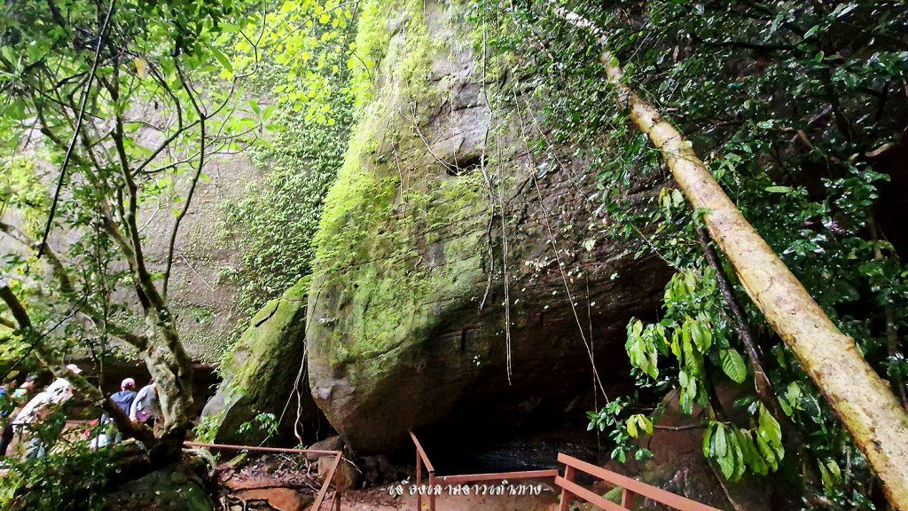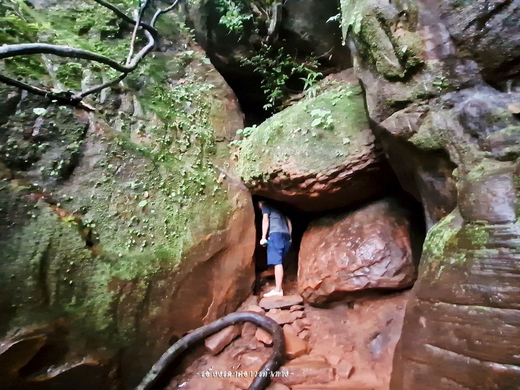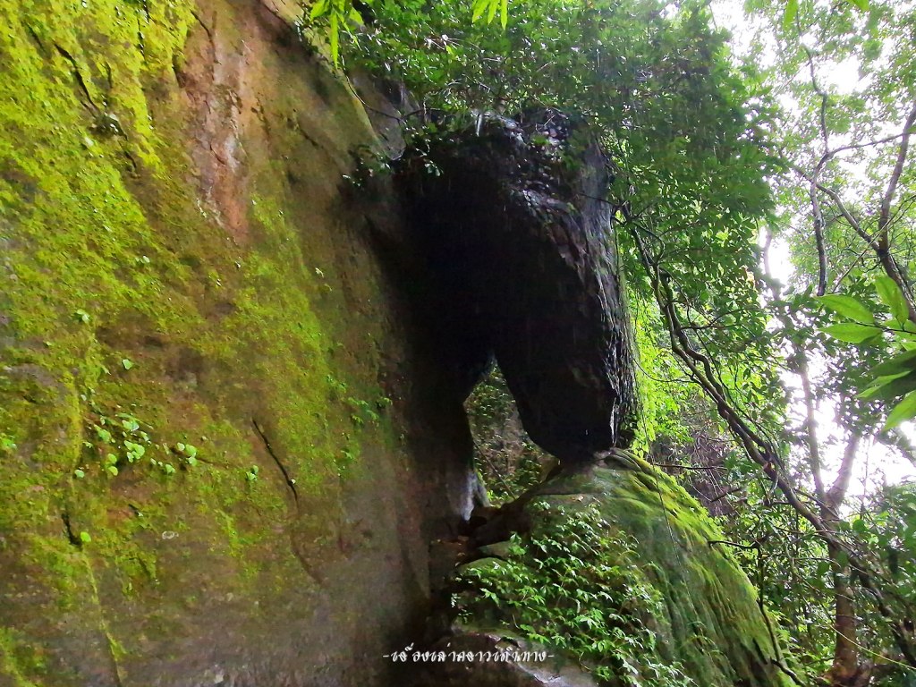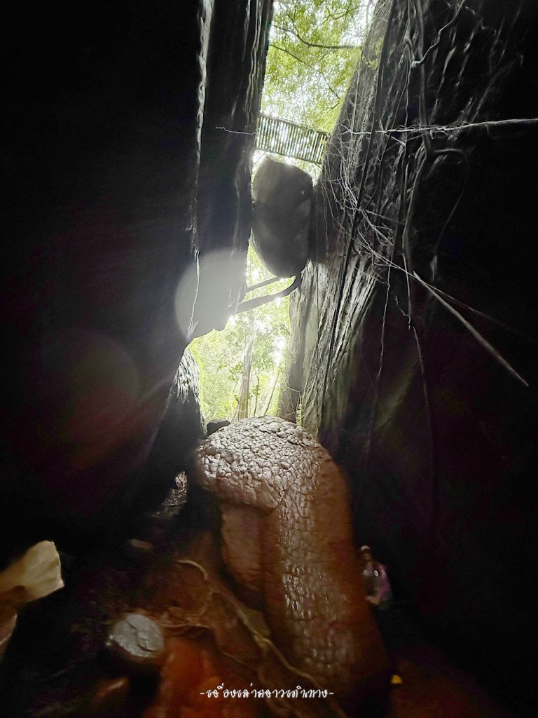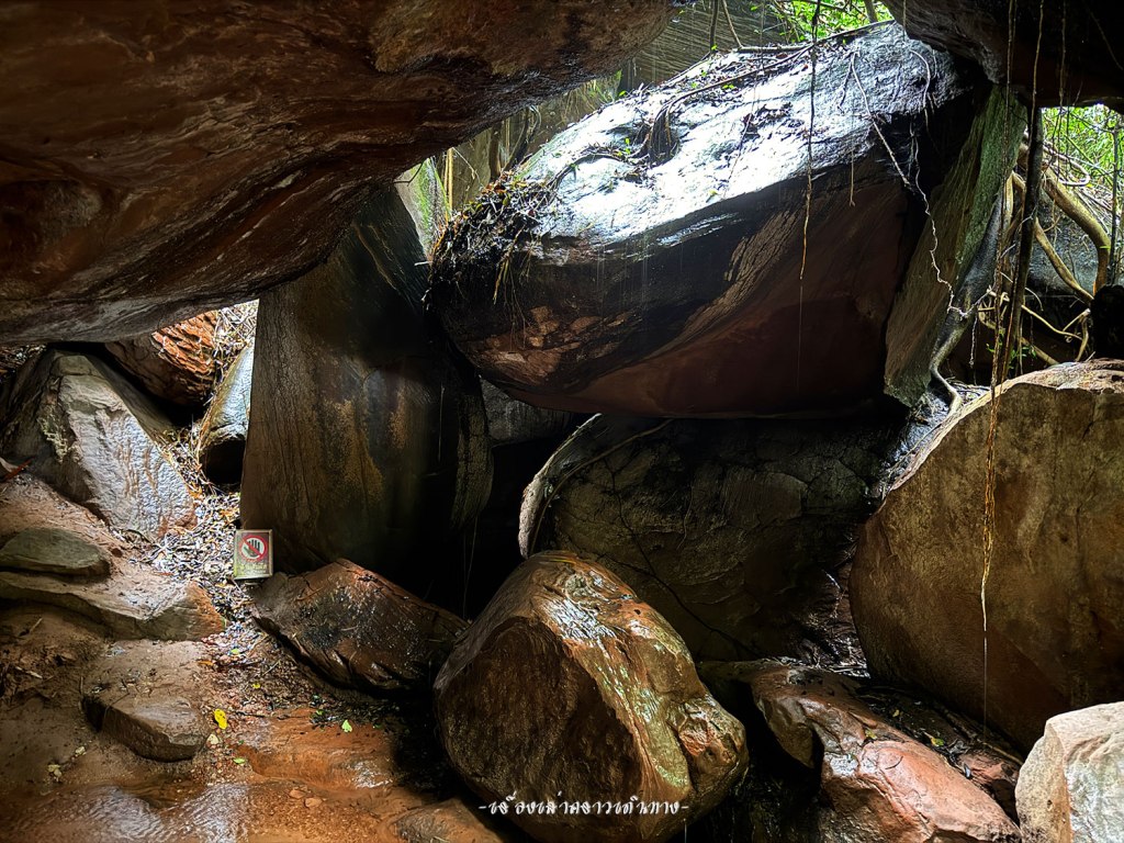 มุดเข้าใต้แนวผาหิน เดิมเคยเป็นสถานที่นั่งปฏิบัติธรรมของพระธุดงค์ ตอนนี้กลายเป็นที่ท่องเที่ยวก็ไม่สงบอีกแล้ว