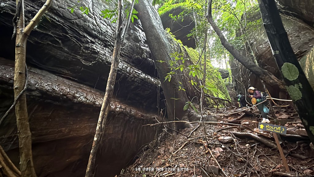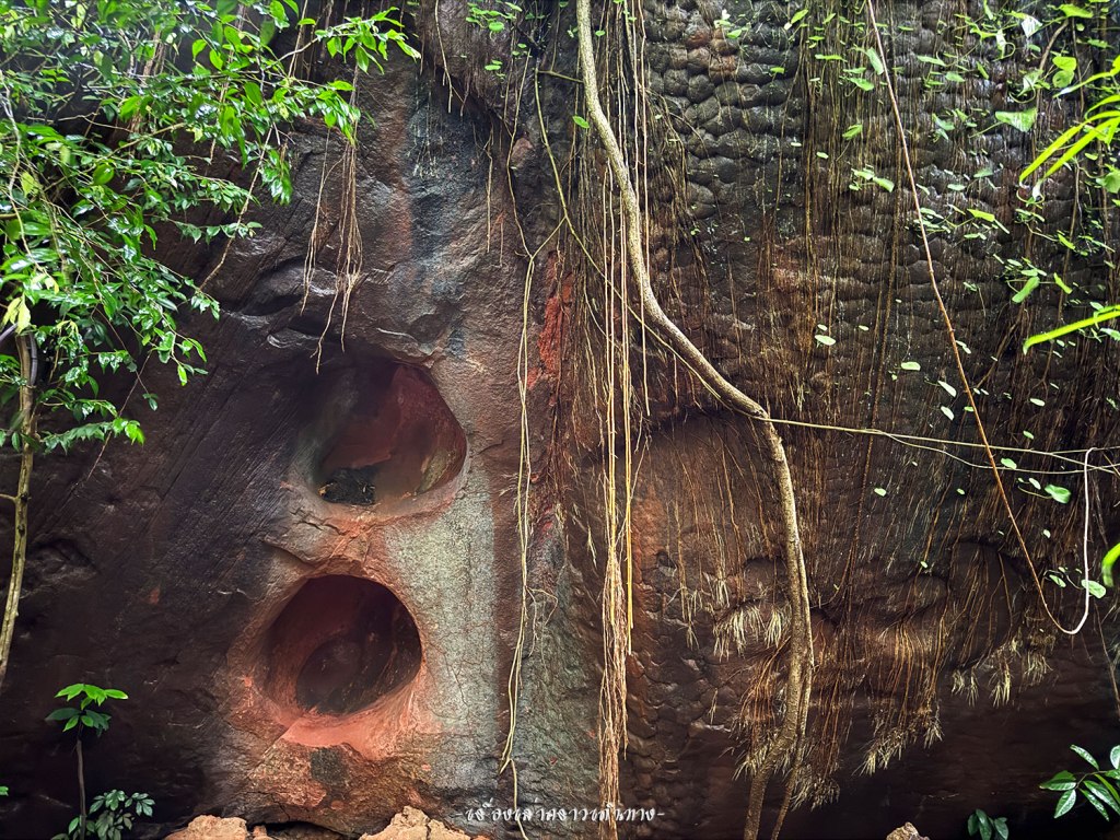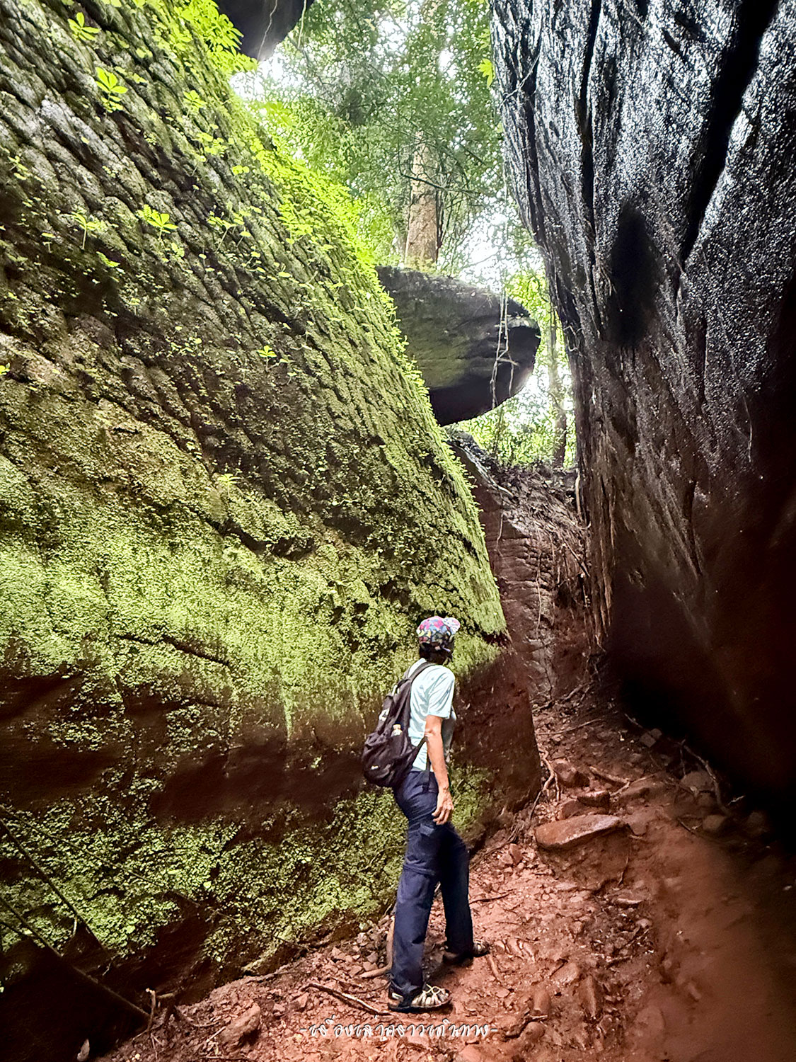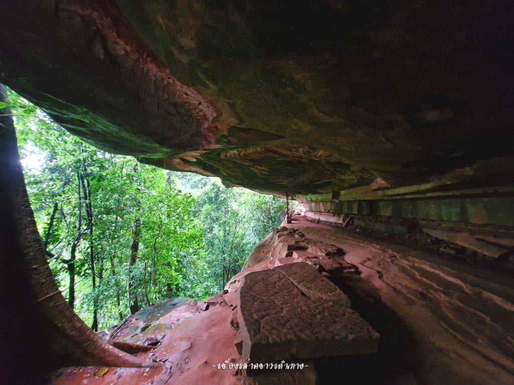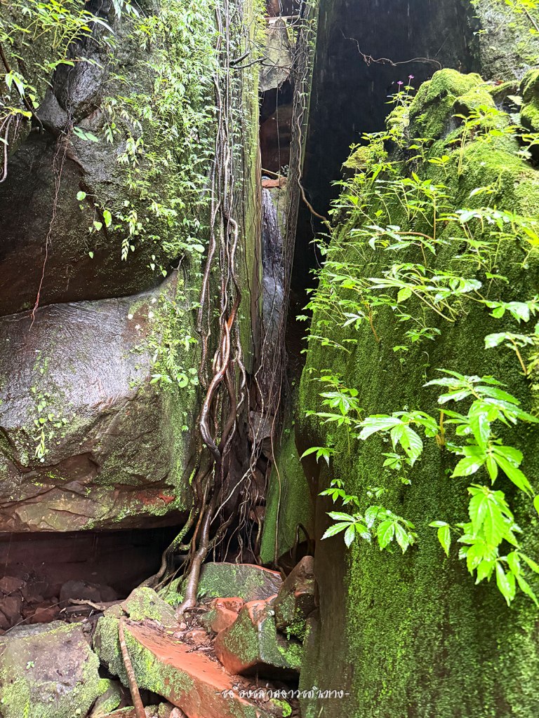 มุดเข้าใต้แนวผาหิน เดิมเคยเป็นสถานที่นั่งปฏิบัติธรรมของพระธุดงค์ ตอนนี้กลายเป็นที่ท่องเที่ยวก็ไม่สงบอีกแล้ว