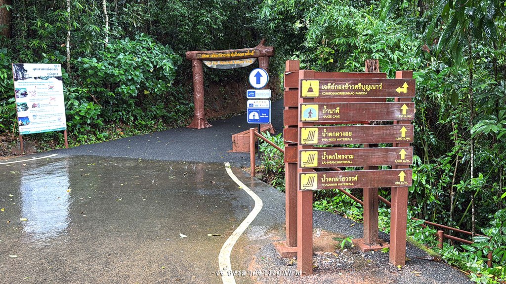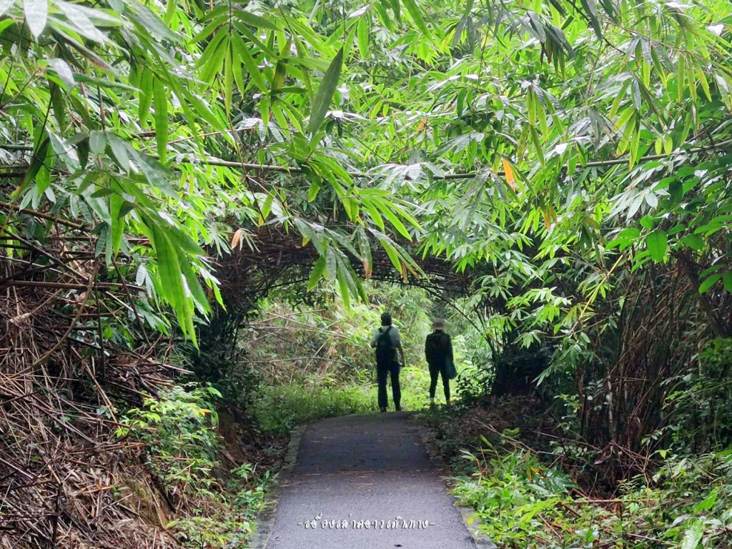 เส้นทางศึกษาธรรมชาติที่เป็นทางเรียบ สุดทางที่ “น้ำตกไทรงาม” ต่อจากนี้เป็นจุดเริ่มต้นเดินขึ้นถ้ำนาคี