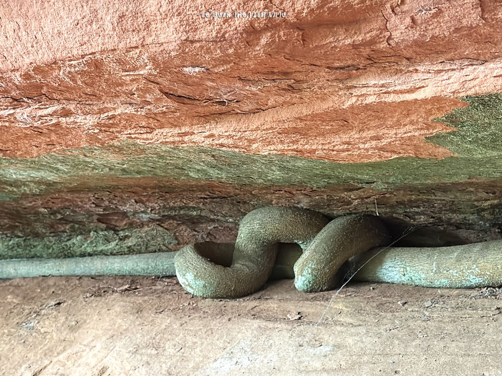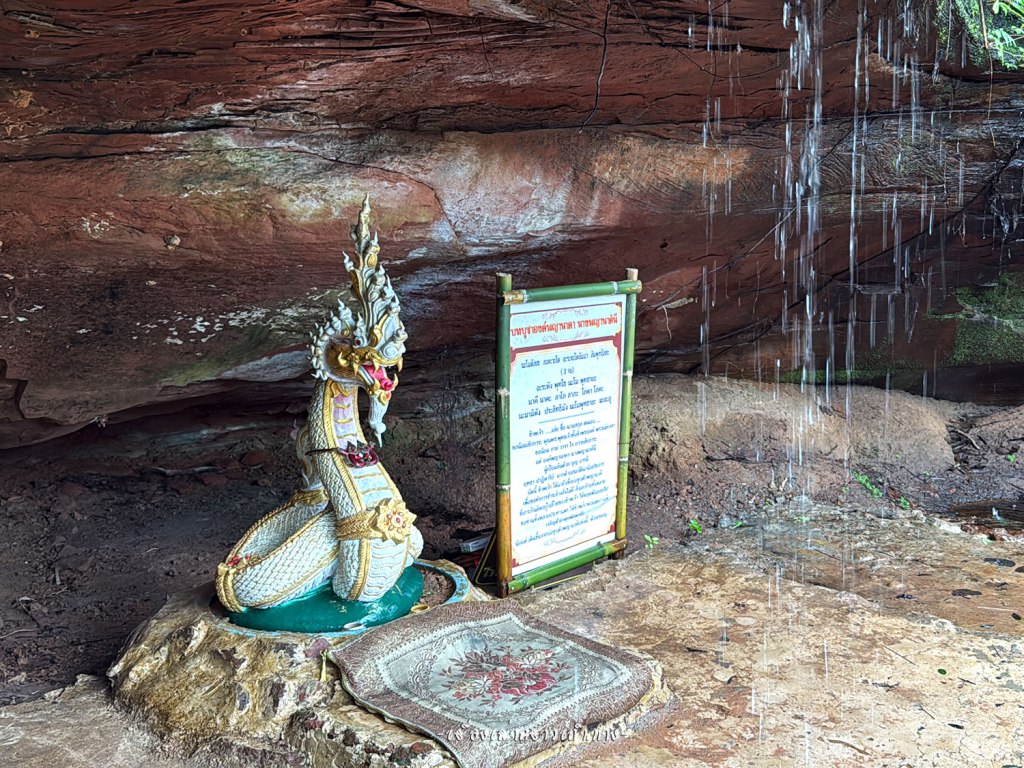 ลงบ่อชุบตัวแล้วเดินย้อนกลับออกมา มีเพิงหินด้านซ้ายมือที่น้องไกด์บอกว่ามี หินนาคีบริวาร (บางเพจสถาปนาเป็นหัวที่ ๑๐ ไปล่ะ)
