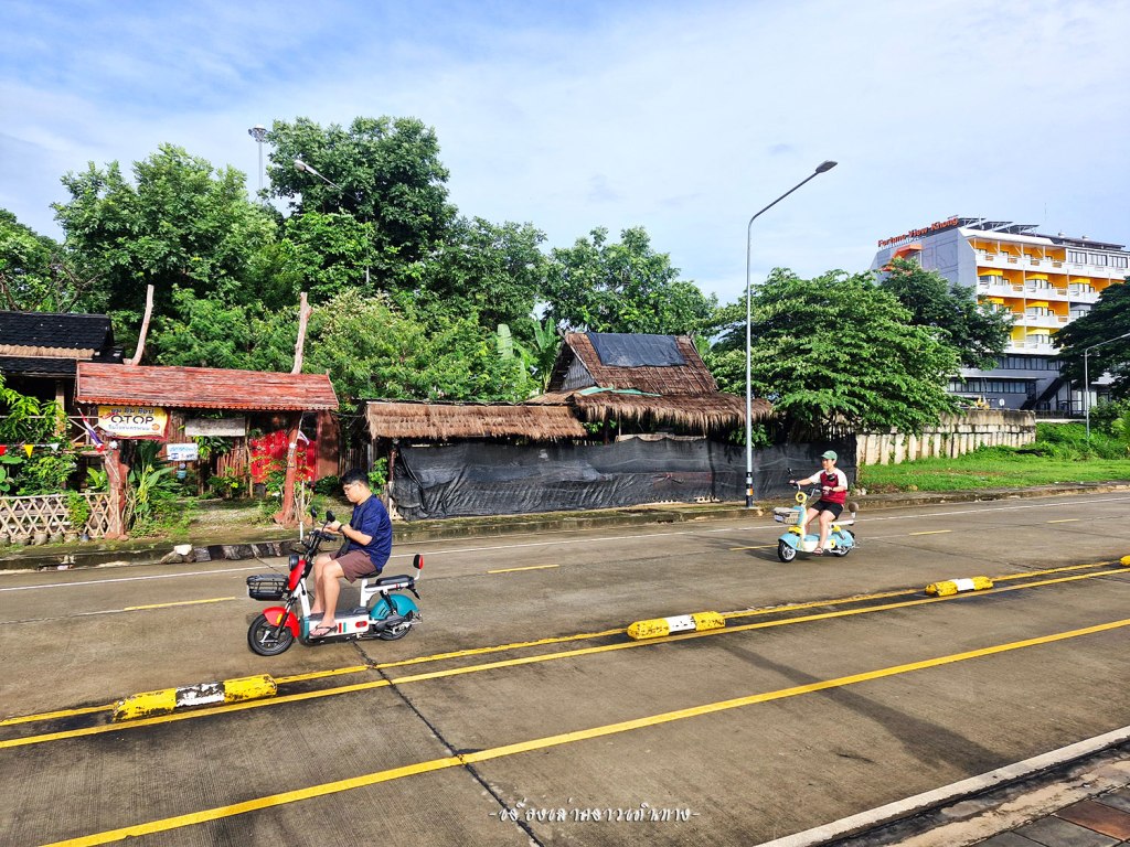 ถนนเลียบโขง มีทำช่องจักรยานไว้อย่างดี / ใครไม่อยากเมื่อยขา หาเช่าจักรยานไฟฟ้าได้ มีร้านเปิดให้เช่าหลายร้านตามข้างทาง