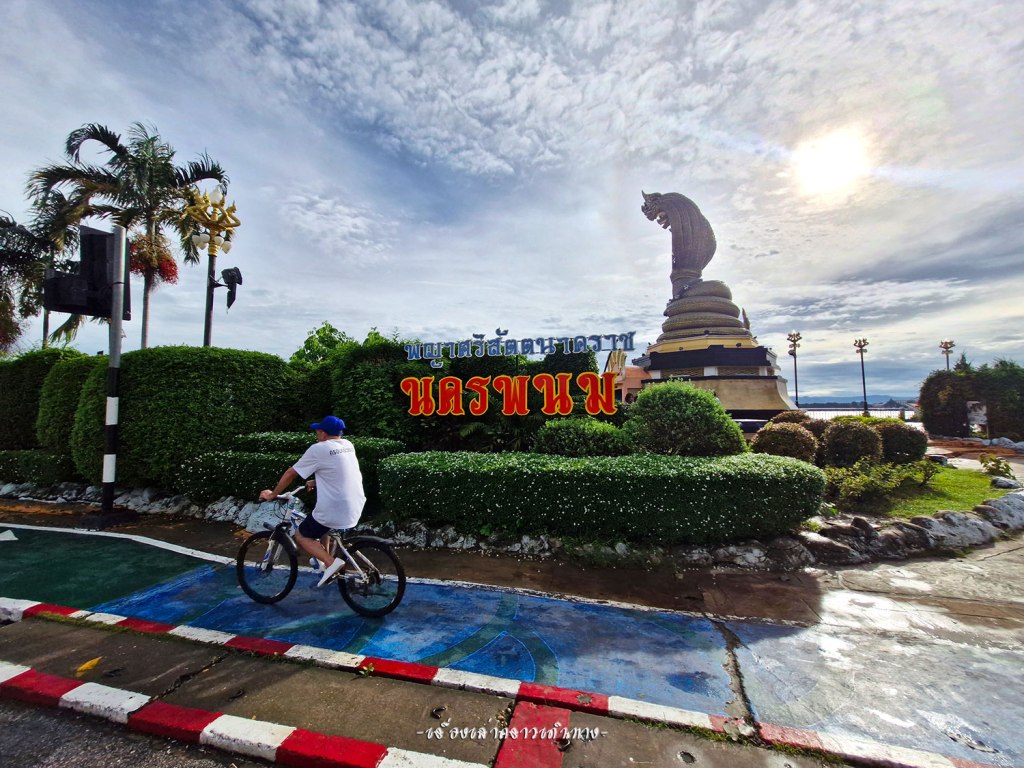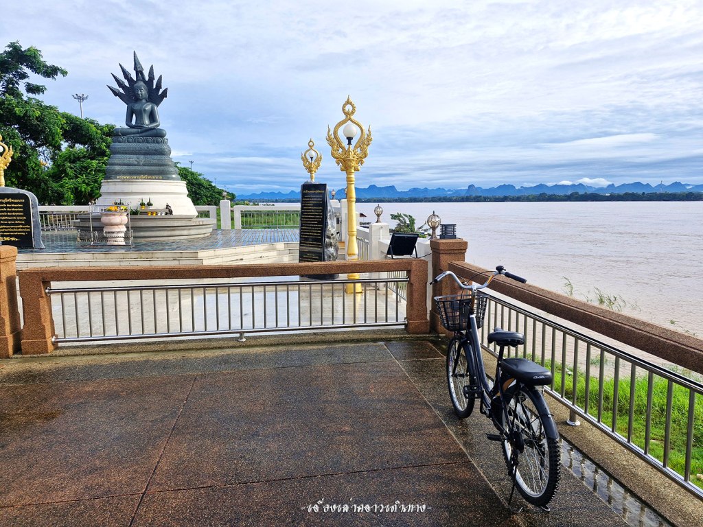 ที่พักมีจักรยานให้ยืมไปปั่นได้ฟรี ก็เลยปั่นจักรยานยามเช้าบนทางจักรยานเลียบริมแม่น้ำโขง ไปจนถึงพญาศรีสัตตนาคราช อากาศดี ทางจักรยานแยกออกจากถนนใหญ่ ปั่นได้ปลอดภัย