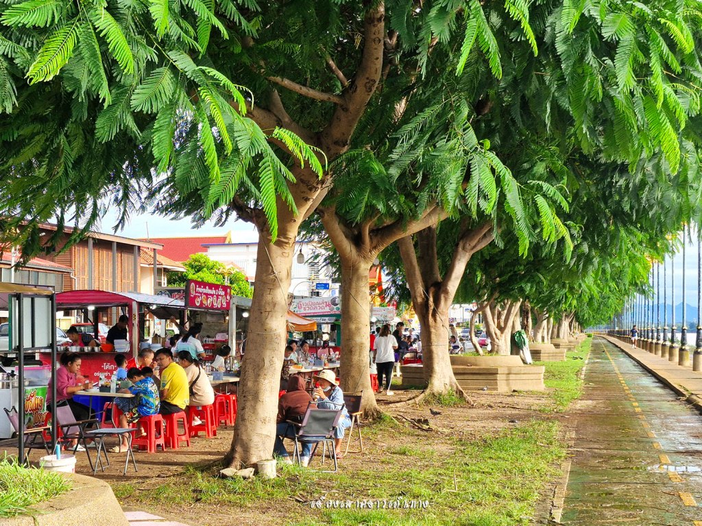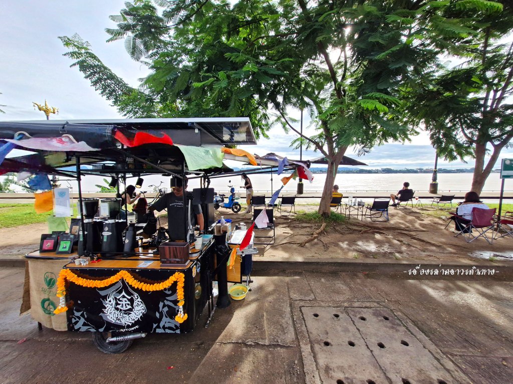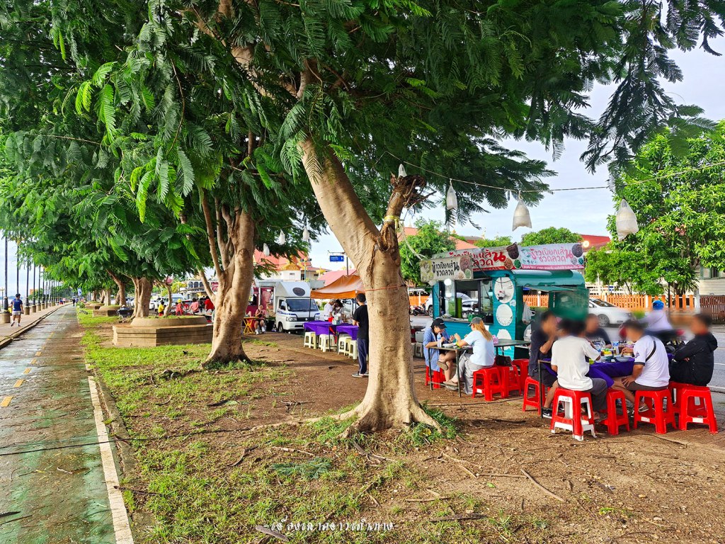 มีฟู๊ดทรัคเปิดขายแต่เช้าหลายคัน บรรยากาศริมโขงดีงาม
