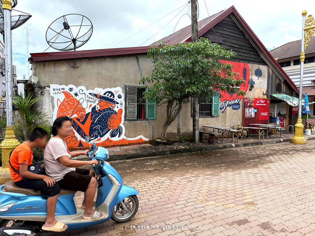 ก่อนกลับ แวะชม สตรีทอาร์ทธาตุพนม กันหน่อย อ่านเจอมาว่ามีอยู่หลายจุด เห็นภาพสวยๆอยู่เหมือนกัน ปรากฏว่ามันรกร้าง เลอะเลือนไปพอสมควรแล้ว แต่ก็แวะถ่ายรูปมา 3 จุด