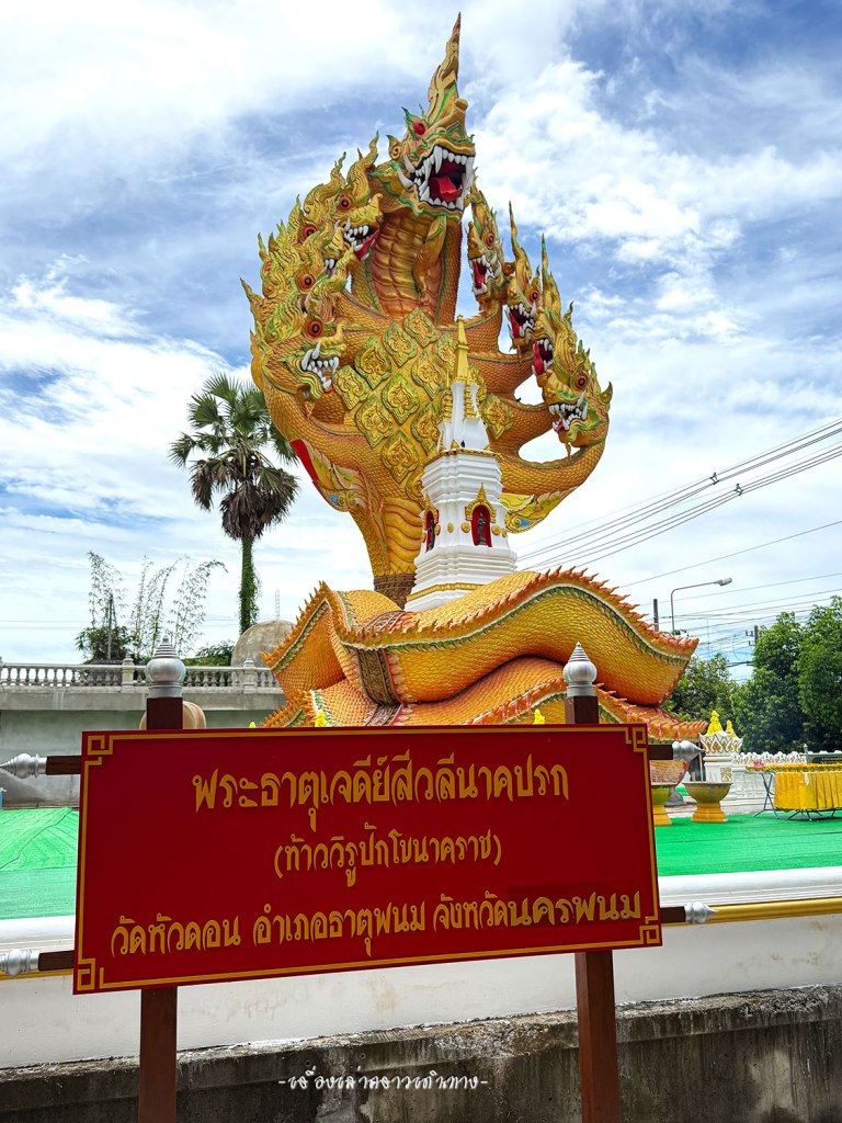 พญานาค ๙ เศียร วัดหัวดอน อำเภอธาตุพนม / พระธาตุน้อยศรีบุญเรือง ที่เล่ากันว่าสร้างขึ้นตามหลังพระธาตุพนม จากเหตุที่ชาวบ้านที่ตั้งใจนำของมีค่าไปบรรจุในองค์พระธาตุพนมแต่ไปไม่ทันพิธี ก็เลยสร้างเป็นพระธาตุน้อยขึ้นมา / พระธาตุมรุกขนคร พระธาตุบริวารของพระธาตุพนมองค์ที่อายุน้อยที่สุด เป็นพระธาตุประจำผู้เกิดวันพุธกลางคืน