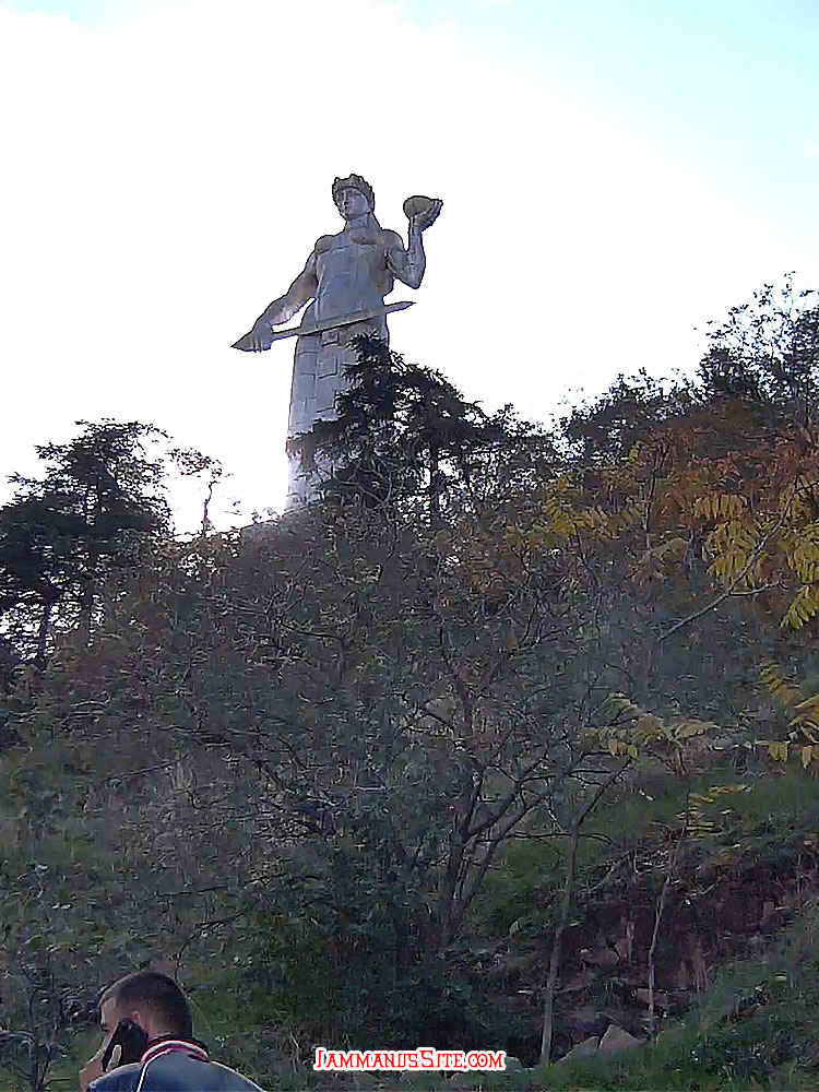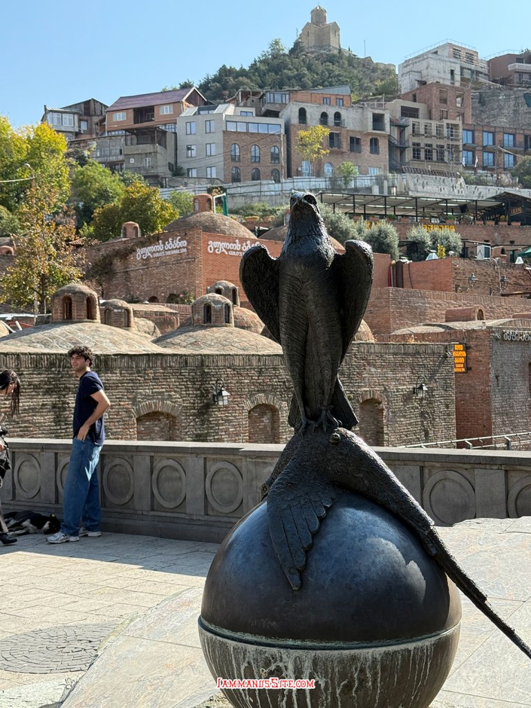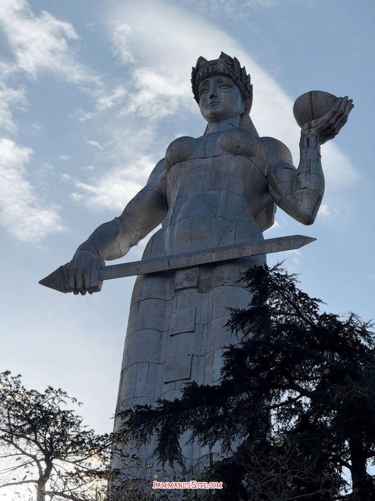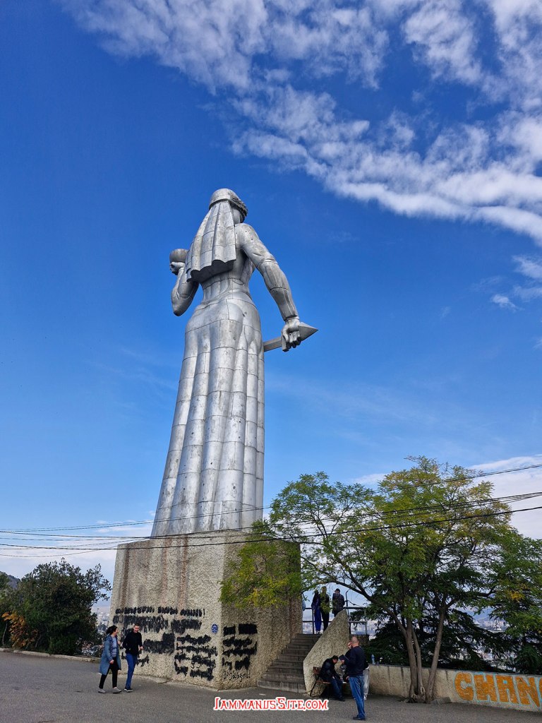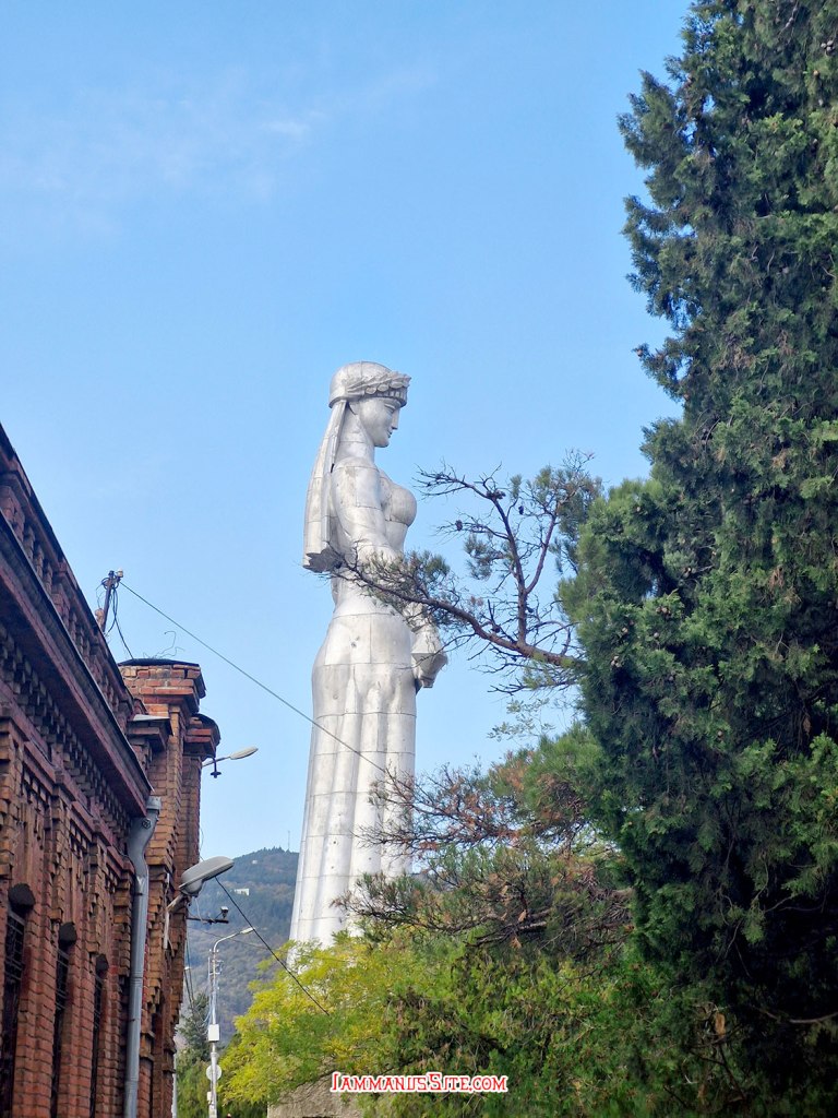 รูปปั้น Mother of Georgia ยืนถือถ้วยไวน์ในมือซ้าย และถือดาบในมือขวา เป็นสัญลักษณ์ที่สื่อถึงจิตวิญญาณของชาวจอร์เจีย เมื่อมาเยือนอย่างมิตรเราก็ยื่นไวน์ให้ แต่หากมาเยือนอย่างศัตรูเราก็จับดาบพร้อมสู้