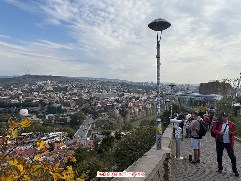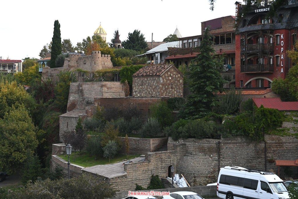 ขึ้นถึงด้านบน เลี้ยวซ้ายไป Narikala Fortress (ตอนนี้ปิดซ่อม) ถ้าเลี้ยวขวาเดินไปหน่อยจะเป็นรูปปั้น Mother of Georgia ตลอดทางมองเห็นวิวเมือง Tbilisi ได้ คนเลยชอบขึ้นมาช่วงเย็นๆ มารอดูพระอาทิตย์ตก