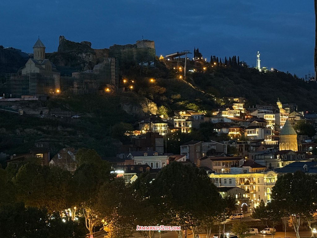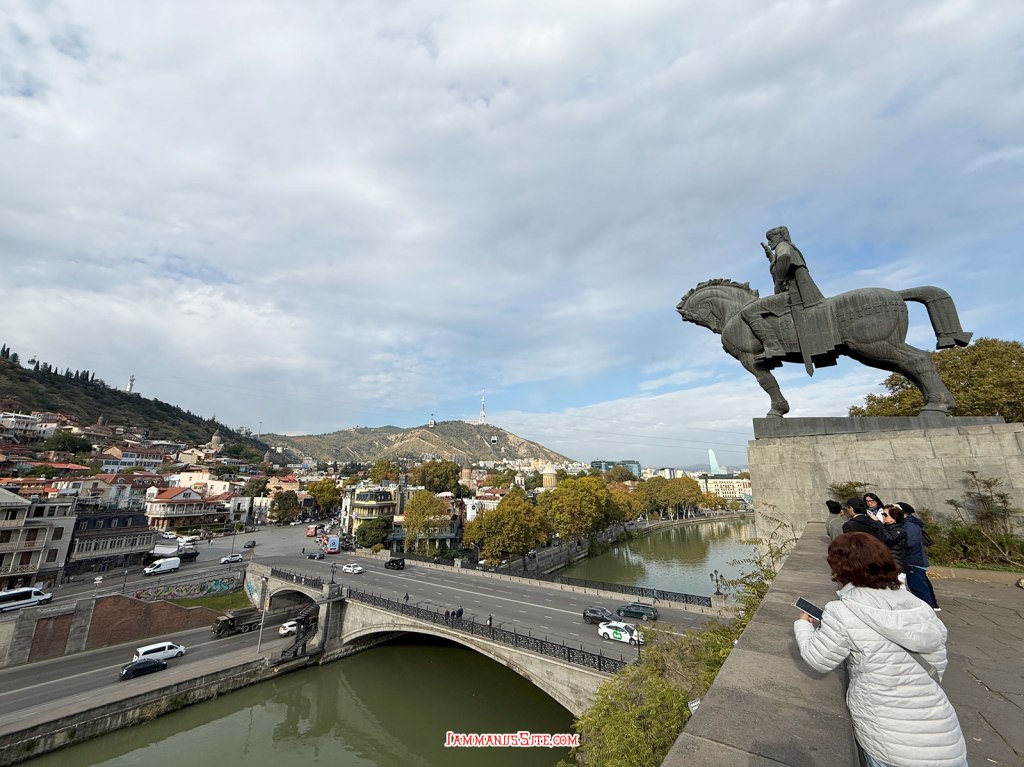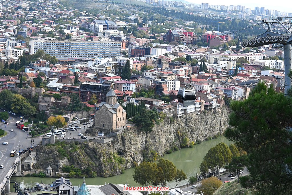 จากหอคอย มองเห็นวิวเมืองเก่าและMother of Georgia รวมทั้ง Metekhi Church จากมุมสูงได้